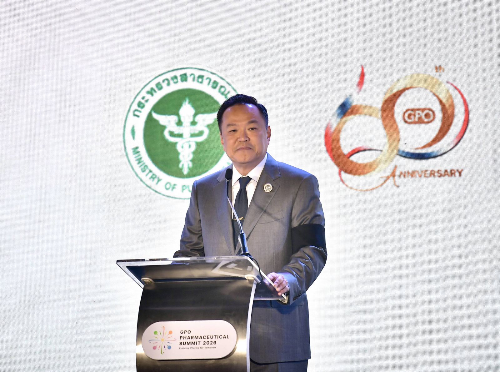 วันนี้ (15 มกราคม 2569) เวลา 09.00 น. ณ ห้องประชุมทรู ไอคอน ฮอลล์ (1 - 2) ชั้น 7 ศูนย์การค้าไอคอนสยาม ถนนเจริญนคร เขตคลองสาน กรุงเทพฯ นายอนุทิน ชาญวีรกูล นายกรัฐมนตรีและรัฐมนตรีว่าการกระทรวงมหาดไทย เป็นประธานในพิธีเปิดงานประชุมวิชาการนานาชาติ GPO PHARMACEUTICAL SUMMIT 2026 ในวาระครบรอบ 60 ปีแห่งการก่อตั้ง ภายใต้แนวคิด “Evolving Pharma for Tomorrow” เพื่อประกาศศักยภาพการเป็นผู้นำด้านวิชาการและนวัตกรรมทางเภสัชกรรมของไทย พร้อมยกระดับอุตสาหกรรมยาไทยสู่ยุคเทคโนโลยีขั้นสูง โดยมี นายแพทย์สมฤกษ์ จึงสมาน ปลัดกระทรวงสาธารณสุข และประธานกรรมการองค์การเภสัชกร พญ.มิ่งขวัญ สุพรรณพงศ์ ผู้อำนวยการองค์การเภสัชกรรม พร้อมบุคลากรทางการแพทย์ เภสัชกร และผู้เชี่ยวชาญจากทั้งในและต่างประเทศเข้าร่วมกว่า 700 คน ร่วมด้วย
