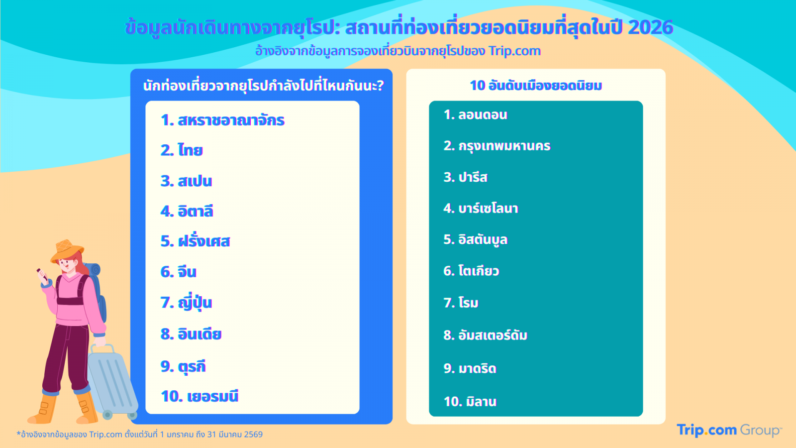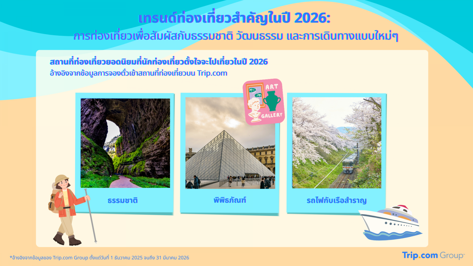 Trip.com เปิดเทรนด์การท่องเที่ยวปี69 เที่ยวไทยยังแรงติดTop3จุดหมายสำคัญ