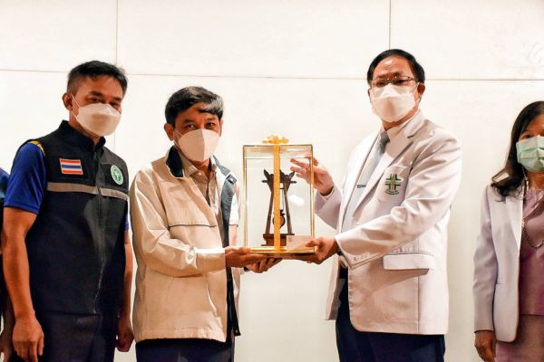 (11 ส.ค.64) นพ.ชวินทร์ ศิรินาค รองปลัดกรุงเทพมหานคร ร่วมกล่าวขอบคุณและมอบของที่ระลึกให้แก่ทีมแพทย์ชนบท โดย นพ.สุภัทร ฮาสุวรรณกิจ ผู้อำนวยการโรงพยาบาลจะนะ ประธานชมรมแพทย์ชนบท ผู้แทนรับมอบ ซึ่งทีมแพทย์ชนบท ได้ร่วมปฏิบัติการตรวจเชิงรุกในพื้นที่กรุงเทพมหานคร โดยเฉพาะในพื้นที่ชุมชนแออัด ระหว่างวันที่ 4-10 ส.ค.ที่ผ่านมา โดยมี นพ. ยงยศ ธรรมวุฒิ รองปลัดกระทรวงสาธารณสุข นพ.อภิชาติ รอดสม รองเลขาธิการสำนักงานหลักประกันสุขภาพแห่งชาติ (สปสช.) ทพ.วิรัตน์ เอื้องพูลสวัสดิ์ ผู้อำนวยการสำนักงานหลักประกันสุขภาพแห่งชาติ (สปสช.) เขต 13 กรุงเทพมหานคร พญ.ภาวิณี รุงทนต์กิจ รองผู้อำนวยการสำนักอนามัย กทม. และ พญ. อลิศรา ทัตตากร ผู้อำนวยการกองควบคุมโรคติดต่อ สำนักอนามัย ร่วมงาน ณ โรงแรมมิราเคิล แกรนด์ คอนเวนชั่น เขตหลักสี่กรุงเทพมหานคร