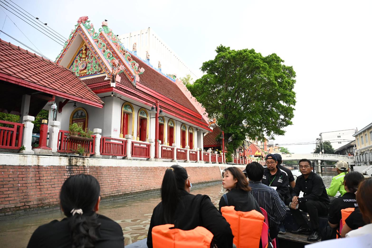 ทั้งนี้ รองปลัดกรุงเทพมหานคร พร้อมด้วยคณะฯ ลงเรือโดยสารพลังงานไฟฟ้าจากท่าเรือพิพิธบางลำพู ล่องไปตามคลองบางลำพู เยี่ยมชมวิถีชีวิตชุมชน ย่านประวัติศาสตร์เมืองเก่า ขึ้นเรือท่าเรือศาลสมเด็จพระเจ้าตากสินมหาราช กราบศาลสมเด็จพระเจ้าตากสินมหาราช ชมร้านทองคำเปลวแม่ศิริ จากนั้นเดินลัดเลาะริมคลองบางลำพู ชมร้านไทยนคร ร้านคราฟต์เก่าแก่ เดินลอดใต้สะพานเฉลิมวันชาติ ตลาดชุมชนตรอกบ้านพานถม แวะชุมชนบ้านพานถม ชมแหล่งผลิตพานถม และเครื่องเงินโบราณในอดีต ชิมข้าวแช่น้ำดอกมะลิ ต่อมาลงเรือท่าเรือชุมชนบ้านพานถม ลอดใต้สะพานผ่านฟ้าลีลาศ ผ่านปากคลองมหานาค เข้าคลองโอ่งอ่าง ผ่านท่าเรือพระยาญาณประกาศ ท่าเรือในอดีตที่ตั้งอยู่บริเวณป้อมมหากาฬ จากนั้นขึ้นเรือท่าเรือสะพาน SCG แวะชมสะพาน SCG ถ่ายภาพกับสตรีทอาร์ตริมคลองโอ่งอ่าง เดินลัดเลาะเข้าตรอกซอกซอย แวะ Ama Hostel ชมตรอกอาม่า ผ่านห้างร้านขายยาสมุนไพร ออกสู่ถนนจักรวรรดิ ไหว้พระวัดบพิตรพิมุขวรวิหาร ก่อนเดินทางด้วยบริการรถ MUVMI กลับพิพิธบางลำพู