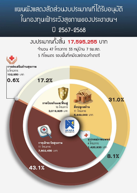 อีกหนึ่งเหตุผลที่ระบบเฝ้าระวังสุขภาพของเหมืองแร่ทองคำชาตรีแตกต่างจากการตรวจสุขภาพทั่วไป คือการเชื่อมโยงข้อมูลเข้ากับกลไกที่ชุมชนสามารถนำข้อมูลนี้ไปใช้ได้จริง ผ่าน “กองทุนเฝ้าระวังสุขภาพ” ซึ่งได้รับการจัดสรรงบประมาณ 3% ของค่าภาคหลวงแร่ โดยปัจจุบันมีเงินสะสมแล้วประมาณ 74 ล้านบาท และบริหารจัดการโดยผู้แทนชุมชน