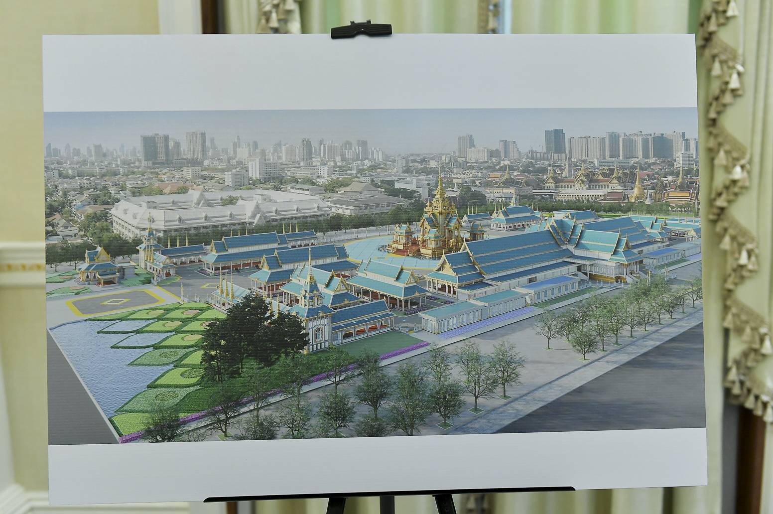 รัฐบาลได้มอบหมายให้กระทรวงวัฒนธรรม โดยกรมศิลปากรดำเนินการออกแบบ และจัดสร้างพระเมรุมาศและสิ่งปลูกสร้างประกอบพระเมรุมาศ การบูรณปฏิสังขรณ์ราชรถและพระยานมาศ การออกแบบพระหีบจันทน์ พระโกศจันทน์ และเครื่องสังเค็ดในพระราชพิธีถวายพระเพลิงพระบรมศพ ซึ่งบัดนี้ พระบาทสมเด็จพระเจ้าอยู่หัว ได้ทรงพระกรุณาโปรดเกล้าโปรดกระหม่อมพระราชทานพระบรมราชานุมัติให้จัดสร้างตามรูปแบบที่รัฐบาลกราบบังคมทูลพระกรุณาแล้ว
