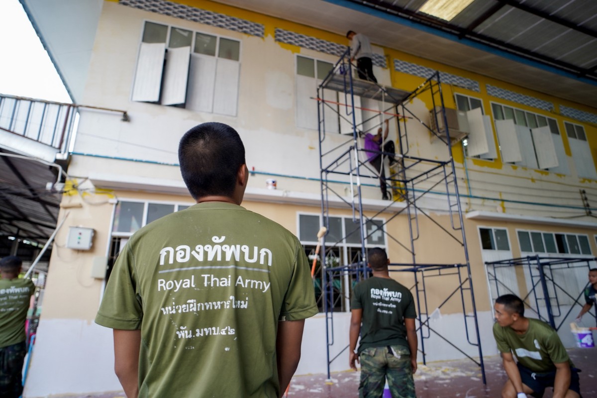 ทีโอเอไม่ทิ้งกันเคียงข้างชาวใต้-จิตอาสา ทาสีฟื้นฟูรพ.-โรงเรียนหลังน้ำท่วมใหญ่