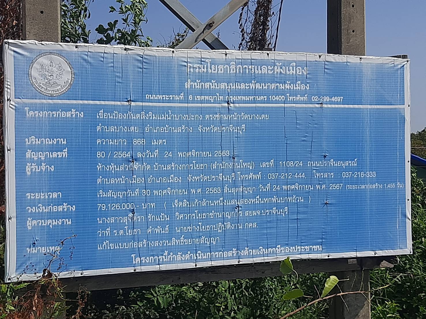 พิกัดความเสียหาย: อ.บ้านสร้าง จ.ปราจีนบุรี ผู้รับผิดชอบโครงการ กรมโยธาธิการและผังเมืองจังหวัดปราจีนบุรี ผู้ชนะการประมูล (เจ้าเดียวกันทั้ง 2 สัญญา) หจก. บ้านสร้างการโยธา กางรายละเอียด 2 สัญญา สัญญาหมด 30 ต.ค.67 ที่ถูกทิ้ง 1. หน้าวัดบางเตย (844 เมตร): งบ 79,126,000 บาท เลขที่โครงการ 63087021404 ราคากลาง79,926,000.00 บาท วงเงินงบประมาณ 80,000,000.00 บาท 2. หน้าวัดบางกระเบา (577 เมตร) งบ 79,133,000 บาท เลขที่โครงการ 63087025507 ราคากลาง :79,933,000.00 บาท วงเงินงบประมาณ :80,000,000.00 บาท