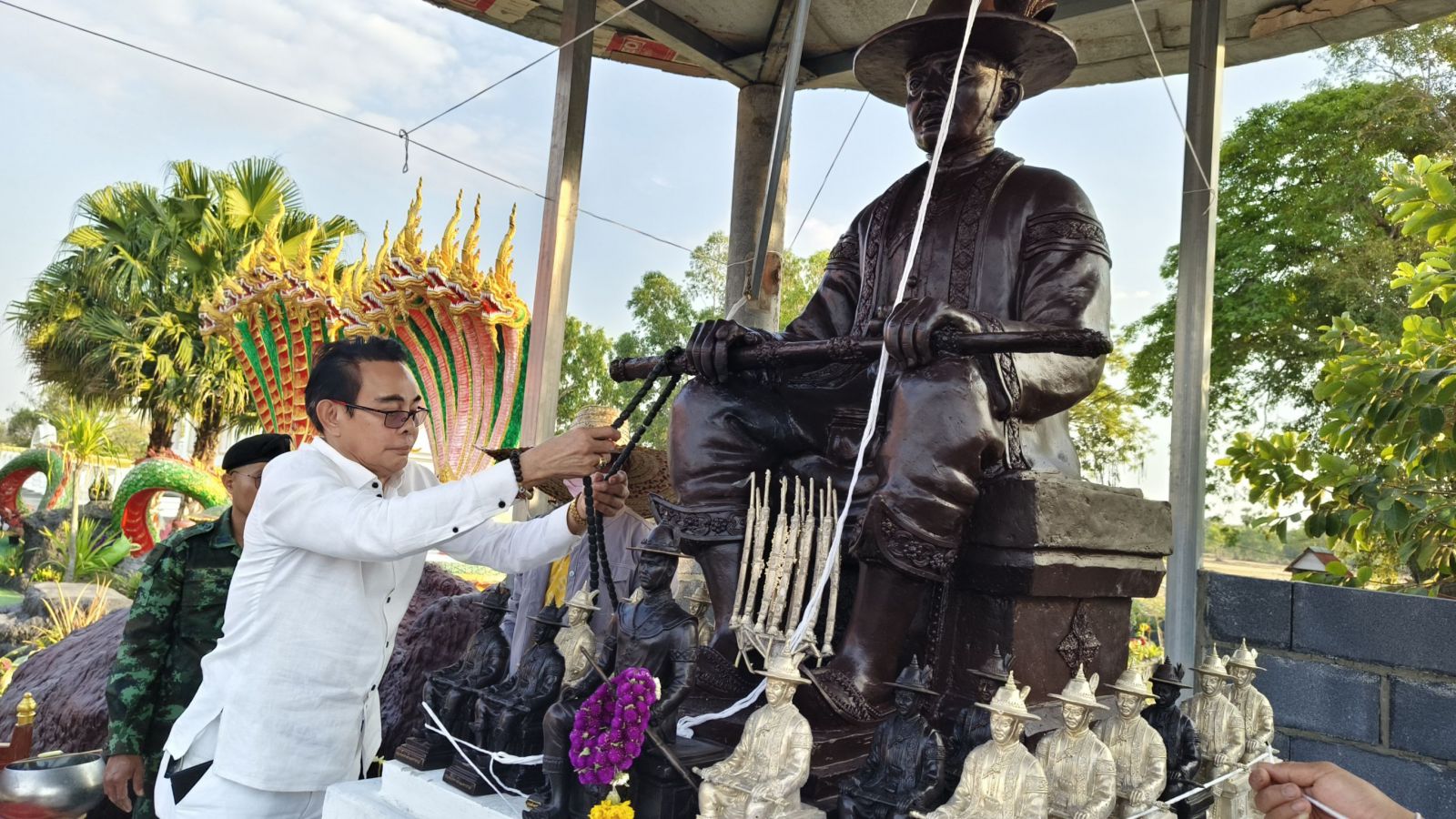ศรีสะเกษ-เมื่อวันที่ 30 ม.ค. 2569 ที่วัดศรีสมบูรณ์รัตนาราม บ้านหนองแคน ต.สำโรง อ.อุทุมพรพิสัย จ.ศรีสะเกษ พระครูจารุวรรณโสภณ เจ้าคณะอำเภออุทุมพรพิสัย เป็นประธานฝ่ายสงฆ์ พ.ต.อ.นิลกาฬ พรศักดิ์ ผกก.สภ.อุทุมพรพิสัย เป็นประธานฝ่ายฆราวาส ในงานพิธิพุทธาภิเษกองค์พระเจ้าตากสินมหาราช ขนาดเท่าองค์จริง ประดิษฐาน ณ ลานพุทธมงคล วัดศรีสมบูรณ์รัตนาราม เพื่อให้สาธุชนได้สักการะบูชา โดยพระครูวินัยธร ศักดิ์มนตรี ปภัสโร เจ้าอาวาสวัดศรีสมบูรณ์รัตนาราม พร้อมด้วย นายชยกร สีหะวงษ์ นายห้างสูทสาคร นำสาธุชน ศิษยานุศิษย์ และชาวบ้านในพื้นที่ร่วมพิธีอย่างคึกคัก