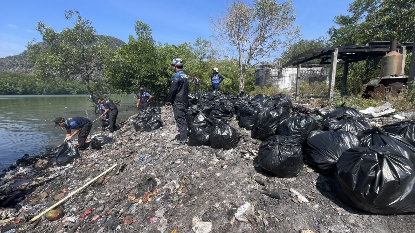 อุทยานฯอ่าวพังงาจับมือสบทช.6เก็บขยะ ตกค้างจุดกำจัดขยะเกาะปันหยี1.2ตัน