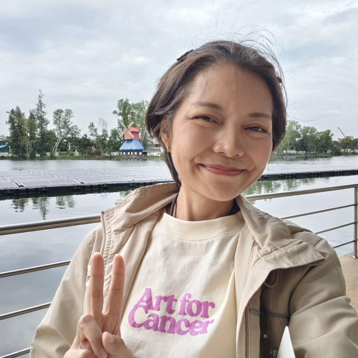 คุณนุชวินทร์ บุญสมบัติ ผู้ป่วยมะเร็ง ร่วมแบ่งปันบทเรียนและมุมมองจากประสบการณ์การรักษาของเธอว่า “เนื่องในวันมะเร็งโลก ในฐานะผู้ป่วยมะเร็งเต้านมคนหนึ่ง วันที่รู้ผลวินิจฉัยเป็นช่วงเวลาที่ช็อกมาก ๆ ค่ะ เพราะเคยเห็นคุณแม่จากไปด้วยโรคมะเร็ง เลยรู้สึกว่า ‘มะเร็งเท่ากับการสูญเสีย’ แต่เมื่อแพทย์ค่อย ๆ อธิบายแผนการรักษา โดยเฉพาะการมีแผนการรักษาที่เหมาะกับลักษณะโรคของเรา และเฉพาะจุด มันจะช่วยเพิ่มโอกาสรอดชีวิตได้มาก ก็เลยทำให้กลับมามีความหวังและตั้งสติเพื่อสู้ต่อ แม้เส้นทางการรักษาจะหนักมาก ทั้งผลข้างเคียงและความเหนื่อยล้า แต่กำลังใจจากคนรอบข้างและการติดตามอาการกับแพทย์อย่างใกล้ชิดก็ช่วยให้ผ่านช่วงเวลายาก ๆ มาได้ อยากให้ผู้ป่วยทุกคนเชื่อในคุณหมอให้มาก ๆ แล้วก็อยากบอกว่า ‘คุณไม่ได้อยู่คนเดียว’ เพราะปัจจุบันโรคมะเร็งไม่ได้น่ากลัวอย่างคิด โอกาสรอดชีวิตนั้นสูงกว่าเมื่อก่อนมากจากความก้าวหน้าทางวิทยาศาสตร์และการแพทย์ และดิฉันก็อยากฝากถึงผู้มีอำนาจตัดสินใจด้านสาธารณสุขว่า อยากขอให้คนไทยทุกคนมีโอกาสในการเข้าถึงการรักษาที่มีคุณภาพอย่างเท่าเทียม เพราะนั่นหมายถึงโอกาสรอดชีวิตและคุณภาพชีวิตที่ดีขึ้นของผู้ป่วยอย่างแท้จริง”