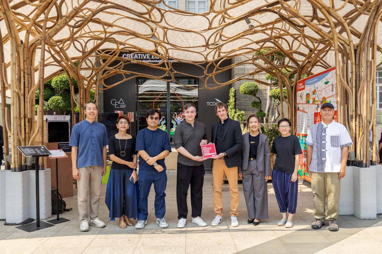 ผลงาน “Augmented Craft” โครงสร้างศาลาหวายที่ดัดโค้งด้วยไอน้ำ (Steam-bent rattan pavilion) ซึ่งตั้งตระหง่านอยู่บริเวณด้านหน้าสำนักงานส่งเสริมเศรษฐกิจสร้างสรรค์ (Creative Economy Agency - CEA) อาคารไปรษณีย์กลางบางรัก ในช่วงงาน Bangkok Design Week 2026 เป็นการทำงานร่วมกันระหว่าง Studio Igor Pantic คณะสถาปัตยกรรมศาสตร์และการออกแบบ (SoA+D) คณะวิศวกรรมศาสตร์ (FoE) และสถาบันวิทยาการหุ่นยนต์ภาคสนาม (FIBO) มหาวิทยาลัยเทคโนโลยีพระจอมเกล้าธนบุรี (มจธ.) โดยมีผู้ออกแบบหลักคือ Igor Pantic อาจารย์ประจำของคณะสถาปัตยกรรมศาสตร์และการออกแบบ แสดงให้เห็นถึงความเป็นผู้นำของมหาวิทยาลัยเทคโนโลยีพระจอมเกล้าธนบุรีในการผสมผสานเทคโนโลยีในกระบวนการทำงานออกแบบสร้างสรรค์