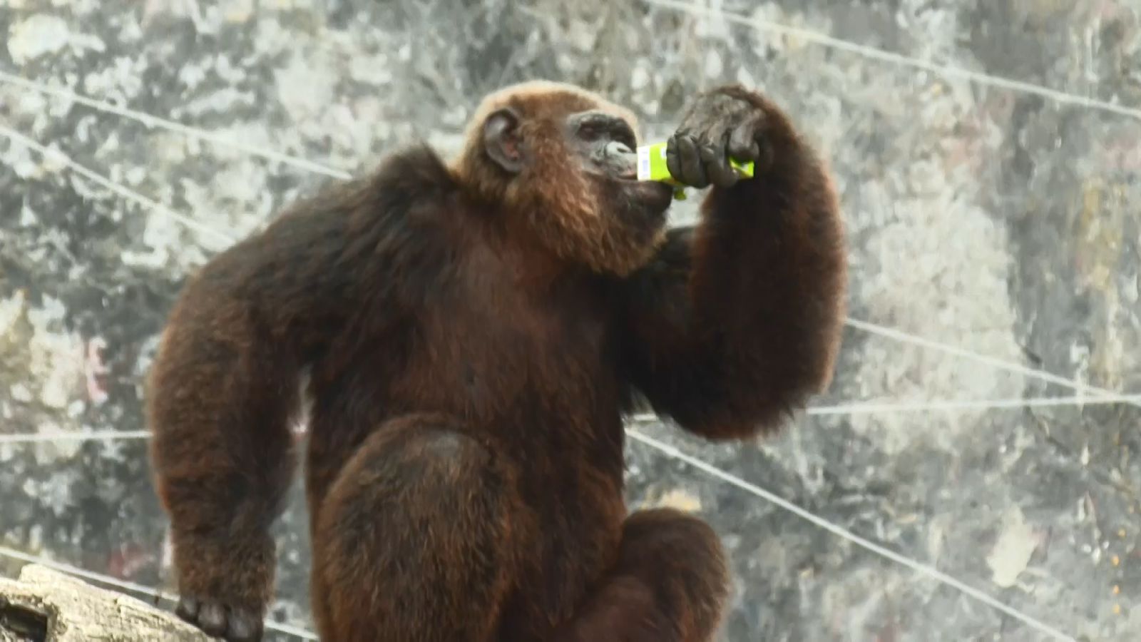 โดยเจ้าหน้าที่ได้นหวานเย็นไปวางไว้ให้ และทันทีที่เจ้าจ้อนกับน้องแป๊บซี่ ออกมาจากกรง ก็ลังเลที่จะเดินไปหยิบหวานเย็นมากิน เอาแต่เดินไปเดินมาโชว์ตัวให้เจ้าหน้าที่และนักเรียนที่มาเท่ียวชม ได้ชมลีลา กระทั่งเจ้าจ้อน เดินเข้าไปหยิบหวานเย็นก้อนใหญ่มากิน แล้ววิ่งแสดงพลังไปรอบส่วนจัดแสดง พร้อมกับปรบมือ ส่งเสียงร้อง ขณะที่นายวุฒิชัย ม่วงมัน ผู้อำนวยการสวนสัตว์สงขลา ก็โยนลูกบอล ไปให้กับเจ้าจ้อนได้โยนเล่นด้วย ก่อนที่เจ้าจ้อนจะจับลูกบอลที่คว้าไว้ได้ โยนกลับคืน สร้างเสียงหัวเราะให้กับเจ้าหน้าที่และนักเรียนเป็นอย่างมาก