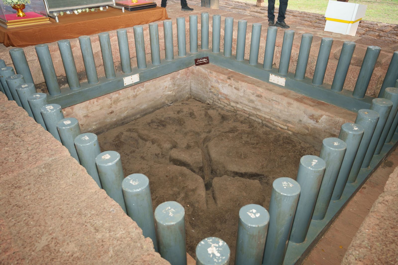 มีการค้นพบโดยกรมศิลปากรได้ขุดแต่งพบกลุ่มโบราณสถานสระมรกต และค้นพบรอยพระพุทธบาทคู่ เมื่อวันที่ 12 กุมภาพันธ์ พ.ศ. 2529 คาดว่าสร้างขึ้นในสมัยทวารวดีถึงสมัยลพบุรี ช่วงประมาณพุทธศตวรรษที่ 11 – 16 ลักษณะทางกายภาพ เป็นรอยพระพุทธบาทคู่ที่สลักลงบนพื้นศิลาแลงธรรมชาติ