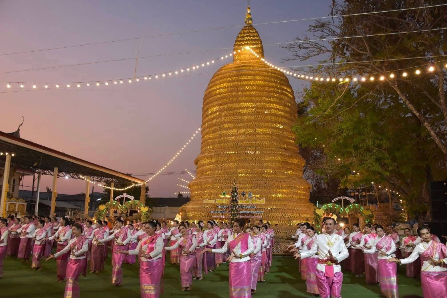 ชาวบ้านวังโป่งร่วมแรงศรัทธาจัดงาน 'บายศรีสู่ขวัญข้าว–ก่อเจดีย์ข้าวเปลือก'