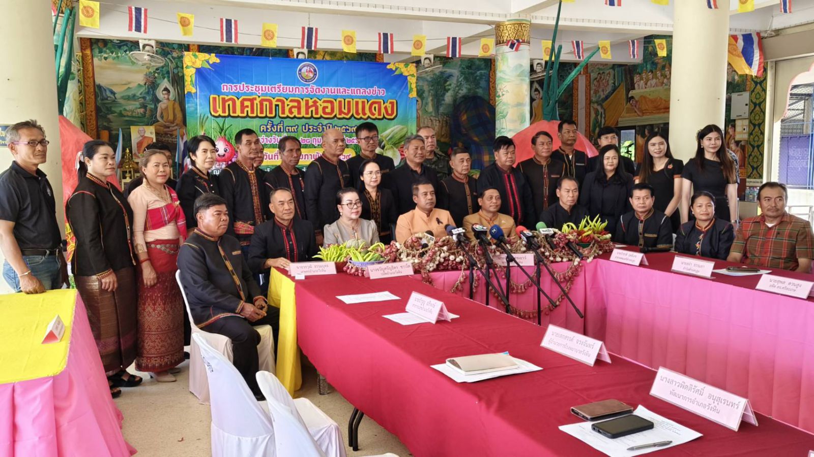 ศรีสะเกษ-เมื่อวันที่ 18 ก.พ. 2569 ที่บริเวณวัดบ้านขุมคำ ต.บุสูง อ.วังหิน จ.ศรีสะเกษ นายลิขิต สุขเยาว์ นายอำเภอวังหิน เป็นประธานในพิธีเปิดการประชุมและแถลงข่าวเตรียมจัดงาน “เทศกาลหอมแดง ครั้งที่ 39 ประจำปี 2569 โดยมี นายรักชาติ ฤทธิ์เดช นายกเทศมนตรีตำบลบุสูง หัวหน้าส่วนราชการ ผู้บริหารสถานศึกษา กำนัน ผู้ใหญ่บ้าน เกษตรกรผู้ปลูกหอมแดงและชาวบ้านในพื้นที่ให้การต้อนรับและร่วมกิจกรรมด้วย