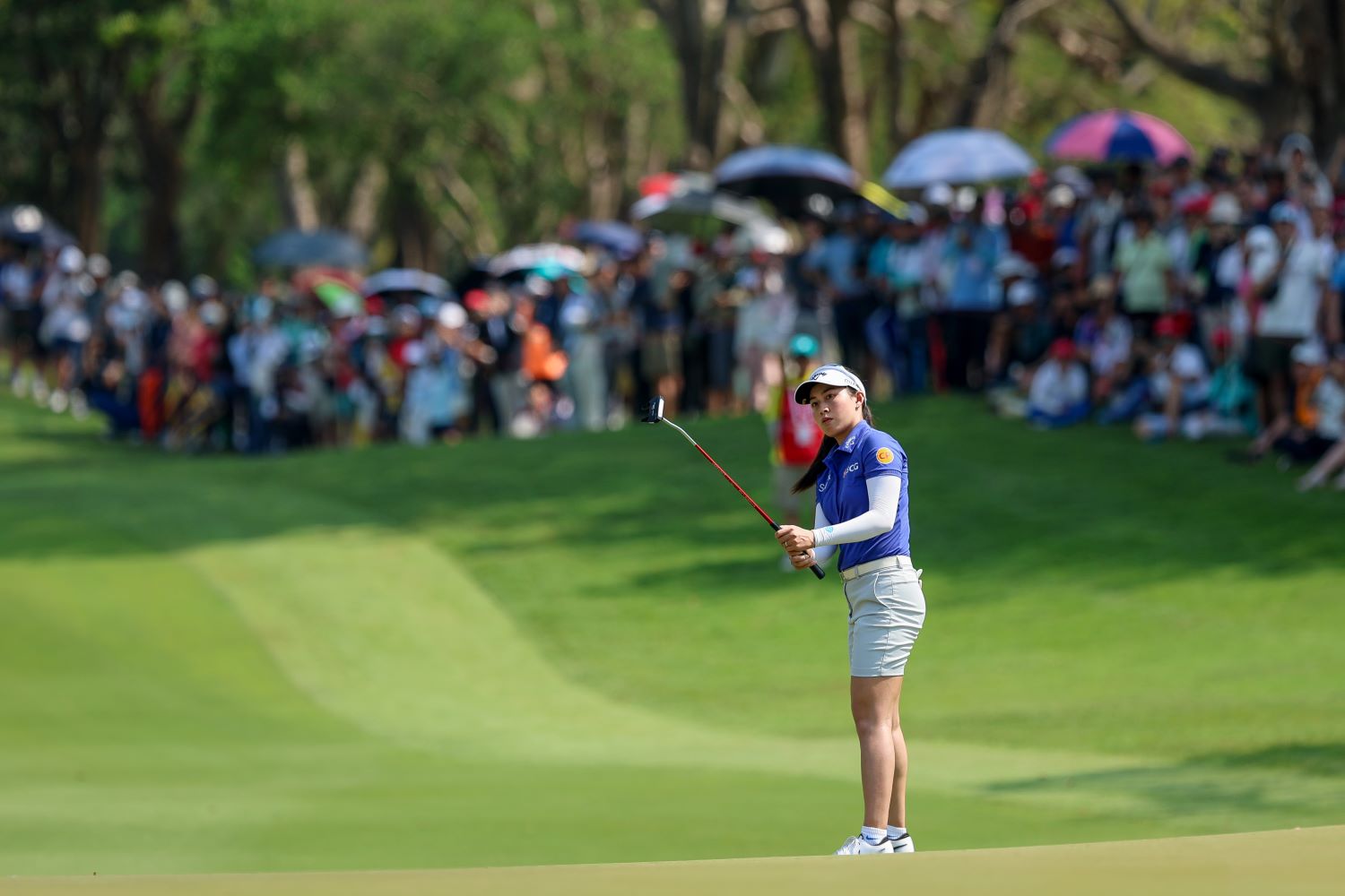 แฟนกอล์ฟส่วนใหญ่เดินตามเชียร์นักกอล์ฟในกลุ่มผู้นำที่มี จีโน่-อาฒยา ฐิติกุล มือ 1 ของโลก วัย 23 ปีเต็ม ที่เก็บไปแล้ว 14 อันเดอร์พาร์ ในการแข่งขัน 2 รอบ ไล่ตาม โซมี ลี ผู้นำวันที่ 2 มืออันดับ 38 ของโลกจากเกาหลีใต้อยู่ 3 สโตรค โดยทั้งคู่ออกรอบในกลุ่มเดียวกันพร้อมด้วย ชิซซี่ อิวาอิ มืออันดับ 30 ของโลกจากญี่ปุ่น อันดับ 3 ร่วม
