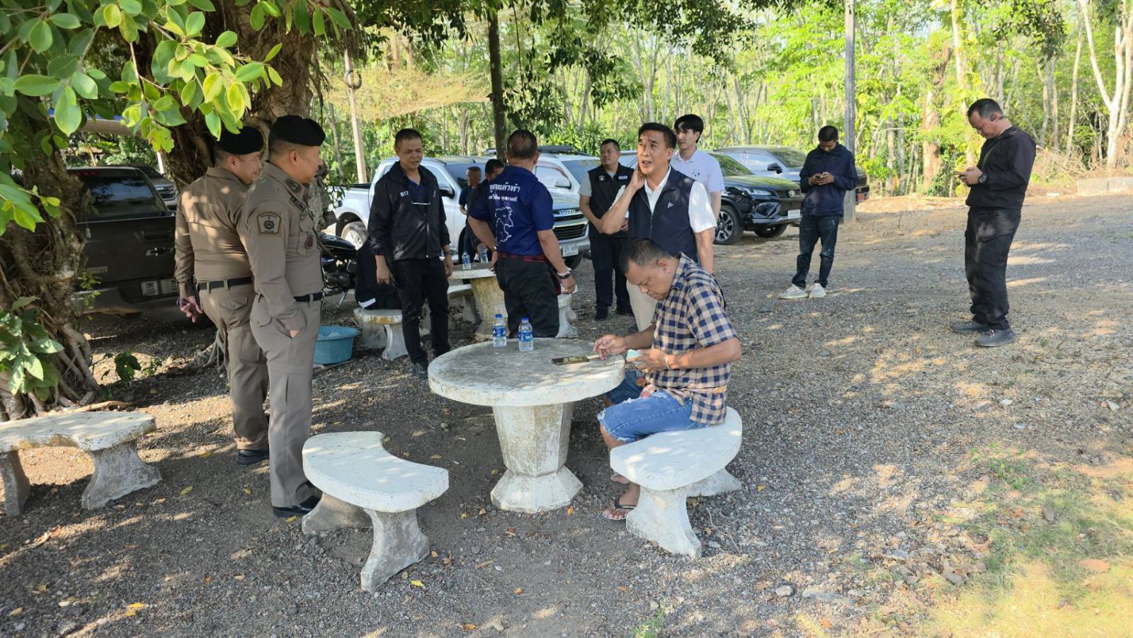 ขณะเจ้าหน้าที่จับกุม ได้มีชายอายุประมาณ 25 ปี รูปร่างอ้วนใหญ่ ได้ขับรถจักรยานยนต์เข้ามาสอบถามและพยายามจะให้เจ้าหน้ที่ชุดจับกุมพูดคุยทางโทรศัพท์กับผู้มีอิทธิพลคนหนึ่งในพื้นที่ แต่เจ้าหน้าที่ไม่สนใจและพูดคุยด้วยแต่อย่างใด