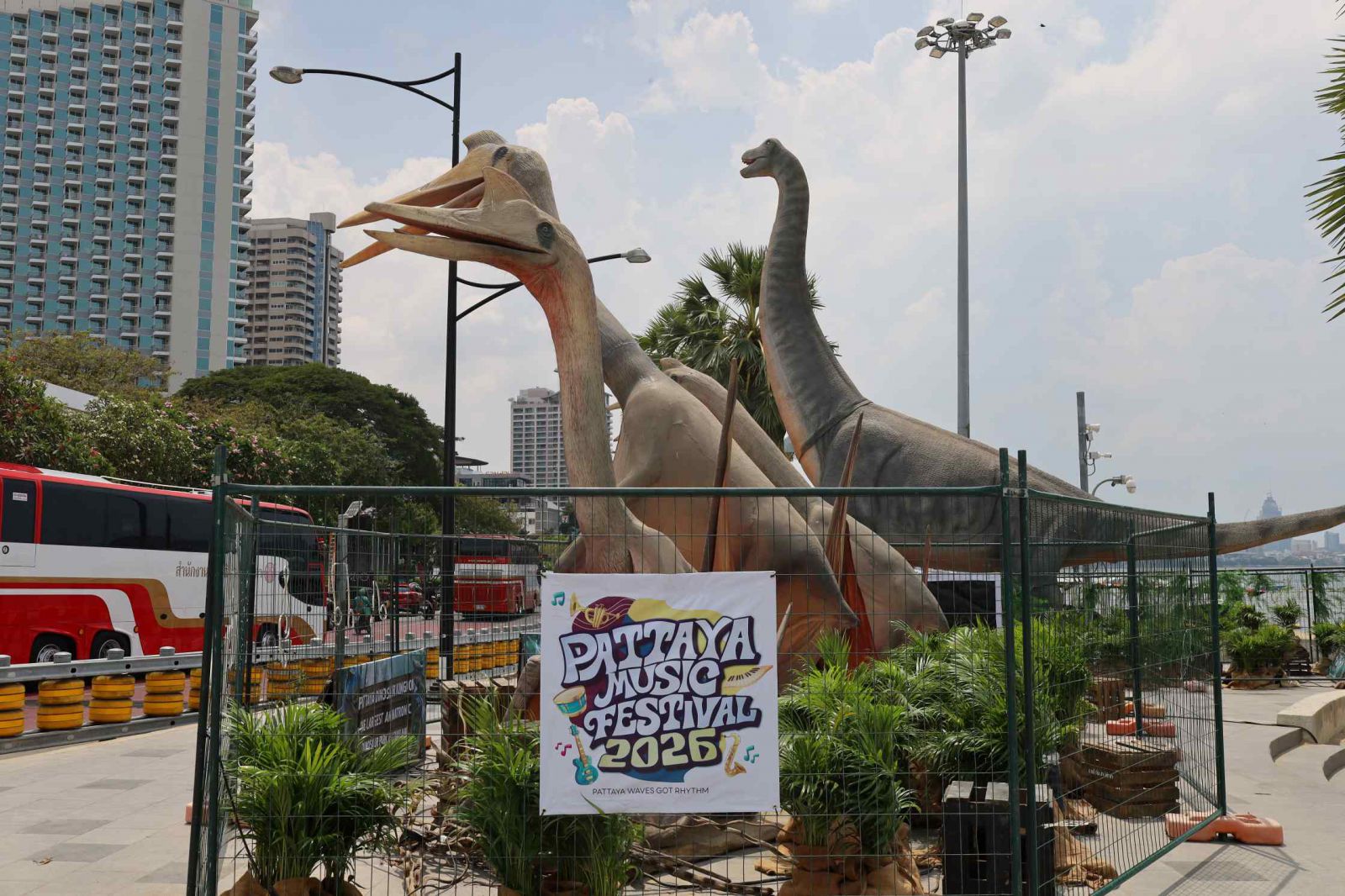 ฮือฮา!ไดโนเสาร์โลกล้านปีโผล่ริมทะเล พัทยารับงานเทศกาลดนตรีPMF2026