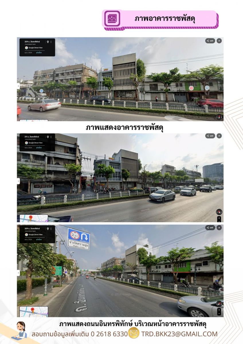 4. แปลงอาคารถนนทรงวาด เปิดประมูลสิทธิการเช่าอาคารราชพัสดุ บริเวณถนนทรงวาด เขตสัมพันธ์วงศ์ (บริเวณชั้น 1) เลขที่อาคาร 1067 เป็นอาคารราชพัสดุย่านเมื่องเก่าที่มีศักยภาพเติบโตสูง ขนาดพื้นที่ใช้สอย 90.40 ตารางเมตร ติดถนนทรงวาด ทำเลค้าขาย คนเดินผ่านตลอดวัน นักท่องเที่ยวไทย-ต่างชาติสัญจรตลอดปี รายล้อมแหล่งท่องเที่ยว คาเฟ่ และวัฒนธรรม อาทิ ไซน่าทาวน์ ตลาดน้อย เป็นโอกาสทองของธุรกิจยุคใหม่บนเสน่ห์เมืองเก่า เหมาะกับร้านอาหาร คาเฟ่ บาร์ สินค้าไลฟ์สไตล์