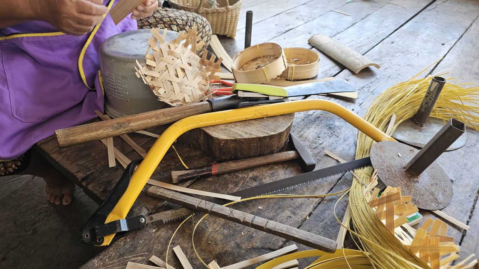 ด้าน นางศิริลักษณ์ ม่วงงาม อายุ 63 ปี เลขที่ 125 บ้านแก่ง หมู่ 4 ตำบลสำพันตา อำเภอนาดี จังหวัดปราจีนบุรี กล่าวว่าเมื่อก่อนตนทำงานโรงงาน หลังอายุ 55 ปีก็ปลดเกษียณ หลังจากออกจากงานมาแล้วก็มาทำหัตถกรรมสานเข่งปลาทูในช่วงว่างจากการเลี้ยงหลาน ขายก็ได้เงินเป็นกอบเป็นกำ เพียง 2 อาทิตย์ มีรายได้ 2,500 บาท