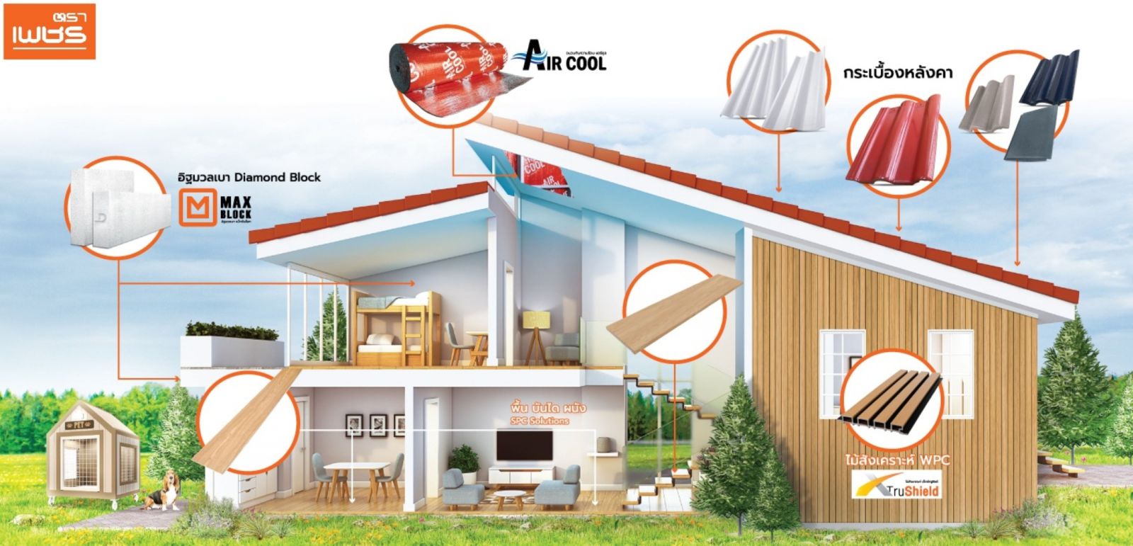 1) Service Integration โดยมีครบทั้ง “สินค้า- บริการ – การจัดส่ง” อาทิ กระเบื้องหลังคาไฟเบอร์ซีเมนต์, กระเบื้องหลังคาคอนกรีต, ไม้สังเคราะห์, อิฐมวลเบา, โครงหลังคาสำเร็จรูป, พื้น SPC, บริการติดตั้งหลังคา, พื้น SPC, เปลี่ยนและทาสีหลังคา ตลอดจนการจัดส่งสินค้าแบบ On-Time Delivery (รัศมี 300 กม. ส่งถึงภายใน 24 ชม.) โดยลูกค้าไม่ต้องประสานงานกับซัพพลายเออร์หลายราย