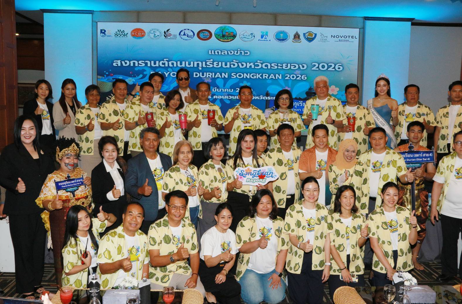 ระยอง-วันที่ 16 มีนาคม 2569 ณ ห้องจันสุดา โรงแรมสตาร์ คอนเวนชั่น จ.ระยอง นายไตรภพ วงศ์ไตรรัตน์ ผู้ว่าราชการจังหวัดระยอง พร้อมด้วย นายประสานต์ พนฤกษาชาติ รองนายกองค์การบริหารสวนจังหวัดระยอง, นางพิศมัย ศุภนันตฤกษ์ นายกสมาคมโรงแรมจังหวัดระยอง, นายวรวุฒิ ค่านสมพงศ์ วัฒนธรรมจังหวัดระยอง, นายทินกร ลาวัณย์เสถียร ประธานหอการค้าจังหวัดระยอง และนายชาญวิทย์ จารุสมบัติ กรรมการและรองผู้จัดการใหญ่ด้านสื่อสารและภาพลักษณ์องค์กร บริษัท ดั๊บเบิ้ล เอ (1991) จำกัด (มหาชน) ร่วมแถลงข่าวเตรียมจัดงาน “สงกรานต์ถนนทุเรียน จังหวัดระยอง 2026 ครั้งที่ 2 ท่ามกลางแขกผู้มีเกียรติ ผู้แทนภาครัฐ-เอกชน เข้าร่วม