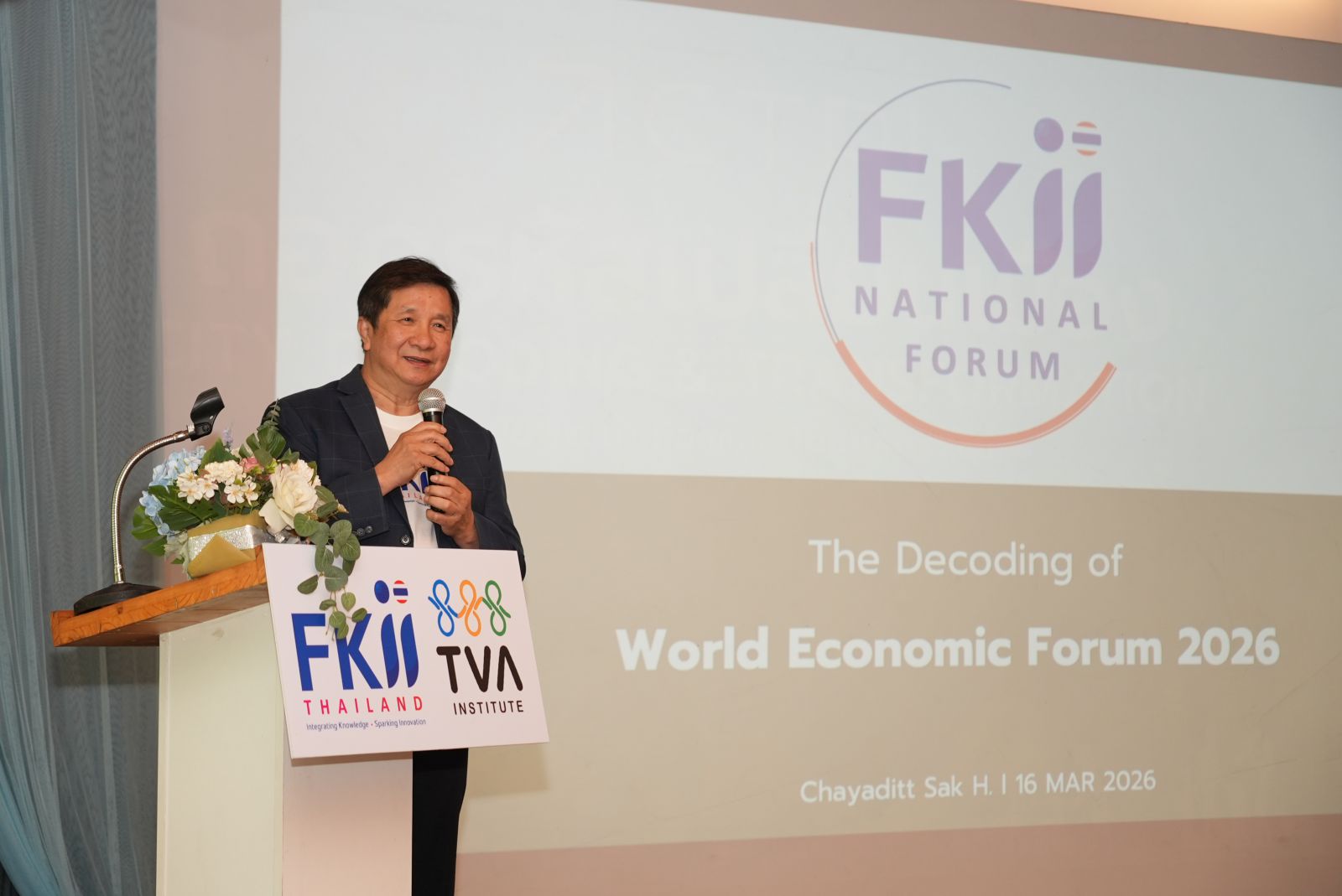 นายชยดิฐ หุตานุวัชร์ ผู้อำนวยการ FKII กล่าวว่า ไทยต้องขับเคลื่อนด้วยเศรษฐกิจ "พอดี" (Por-dee Business) เน้นความยั่งยืน (ESG) และใช้เทคโนโลยี Smart Living เพื่อยกระดับคุณภาพชีวิตเกษตรกรและผู้สูงอายุ มุ่งเป้าให้ไทยเป็นจุดหมายของสุขภาพดีและอายุยืนยาว(Longevity)ในระดับสากล