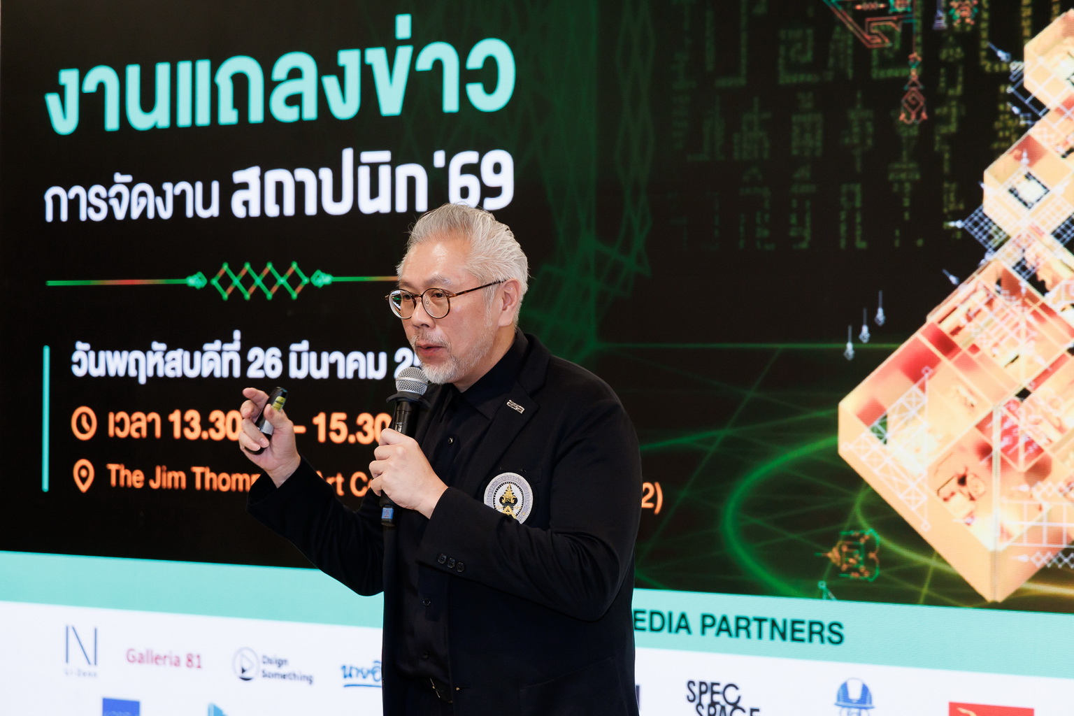 นายจาตุรนต์ กิ่งมิ่งแฮ ประธานจัดงานสถาปนิก’69 กล่าวถึงภาพรวมความพร้อมจัดแสดงนิทรรศการและกิจกรรมที่จะเกิดขึ้นภายในงานสถาปนิก’69 แบ่งเป็น 5 ส่วนหลัก ได้แก่ 1. THEME EXHIBITION ส่วนนิทรรศการหลัก 2. FORUM ส่วนของงานสัมมนา 3. THE FOUNDATION ส่วนนิทรรศการงานวิชาการ 4. INTELLIGENCE & COLLABORATION PLATFORM ส่วนนิทรรศการสุดยอดผลงานและความร่วมมือทางวิชาชีพ 5. ACTIVITIES AND SERVICES ส่วนงานพื้นที่กิจกรรมและบริการ โดยส่วนแรกนิทรรศการหลัก ประกอบด้วย THAI INTELLIGENCE ถือเป็นไฮไลท์หลักของงานส่วน THEME EXHIBITION โดยนําเสนอผลงาน Prototype ชิ้นงานต้นแบบส่วนงานขนาดเท่าของจริง จากสถาปนิกไทยที่เป็นที่ยอมรับในระดับนานาชาติ อาทิ คุณบุญเสริม เปรมธาดา จาก Bangkok Project Studio, คุณกุลภัทร ยันตรศาสตร์ จาก WHY Architects และคุณกุลธิดา ทรงกิตติภักดี และคุณเจอร์รี่ หง จาก Jenchieh Hung + Kulthida Songkittipakdee / HAS design and research