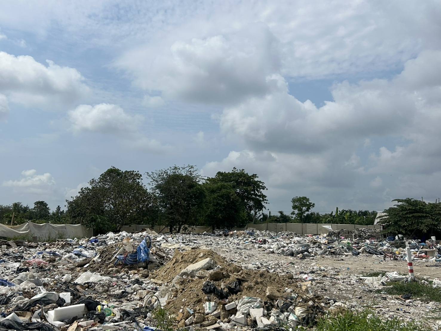 สำหรับปัญหาฝุ่นละอองที่ส่งผลกระทบต่อประชาชนที่พักอาศัยบริเวณโดยรอบ เจ้าหน้าที่ได้แนะนำให้ผู้ดูแลพื้นที่ให้ดำเนินการติดตั้งสแลนป้องกันฝุ่นและดำเนินการฉีดพรมน้ำอย่างสม่ำเสมอ เพื่อลดปริมาณฝุ่นละออง จากการสุ่มตรวจติดตามพบว่า ผู้ดูแลพื้นที่ได้ดำเนินการตามคำแนะนำของเจ้าหน้าที่อย่างต่อเนื่อง ส่วนวัสดุที่ใช้ถมพื้นที่ จากการตรวจสอบพบว่า เป็นเศษวัสดุก่อสร้าง เศษไม้ และอินทรียวัตถุ เช่น ใบไม้ กิ่งไม้ โดยไม่พบกลิ่นเน่าเหม็น ซึ่งผู้ดูแลพื้นที่แจ้งว่า การปรับถมพื้นที่ทั้ง 2 แปลงจะดำเนินการแล้วเสร็จภายในระยะเวลาประมาณ 2 สัปดาห์ ทั้งนี้ สำนักงานเขตฯ จะติดตามตรวจสอบและกำกับดูแลการดำเนินการในพื้นที่อย่างต่อเนื่อง เพื่อป้องกันไม่ให้เกิดผลกระทบต่อประชาชน และหากพบการกระทำที่เข้าข่ายความผิดจะดำเนินการตามกฎหมายที่เกี่ยวข้องอย่างเคร่งครัดต่อไป