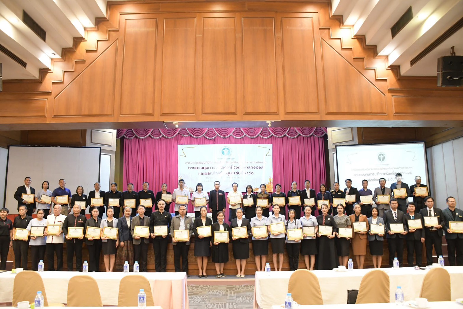 นอกจากนี้ ภายในงานยังได้มีพิธีมอบเกียรติบัตรให้แก่บุคคล หน่วยงาน และชมรมที่มีผลงานดีเด่นด้านการควบคุมเครื่องดื่มแอลกอฮอล์และผลิตภัณฑ์ยาสูบ เพื่อเป็นการสร้างขวัญและกำลังใจให้กับผู้ปฏิบัติงานที่เป็นต้นแบบในการขับเคลื่อนสังคมปลอดอบายมุขอย่างยั่งยืนสืบไป