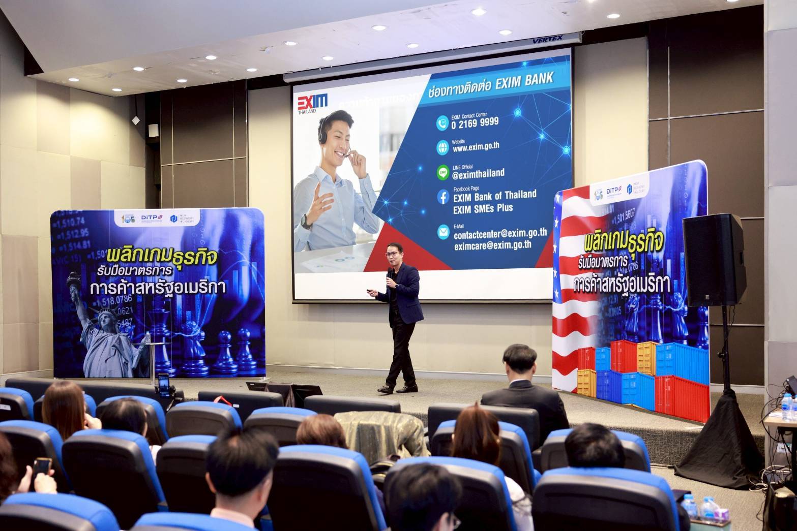 อีกหนึ่งไฮไลต์สำคัญของงาน คือ การเสวนา “การปรับตัวของผู้ประกอบการไทยภายใต้มาตรการการค้าสหรัฐฯ” ที่เปิดโอกาสให้ผู้แทนจากแพลตฟอร์มการค้าระดับโลกและผู้ประกอบการภาคเอกชน ร่วมแบ่งปันประสบการณ์จริงในการปรับโมเดลธุรกิจ การใช้ช่องทางดิจิทัล และการบริหารห่วงโซ่อุปทาน เพื่อรับมือกับกติกาการค้าที่เปลี่ยนแปลงไปปิดท้ายด้วยการให้ความรู้เกี่ยวกับ เครื่องมือและมาตรการทางการเงินเพื่อช่วยเหลือผู้ส่งออกไทย เพื่อเสริมสภาพคล่องและเพิ่มความพร้อมในการดำเนินธุรกิจภายใต้สถานการณ์ความไม่แน่นอนของการค้าโลก