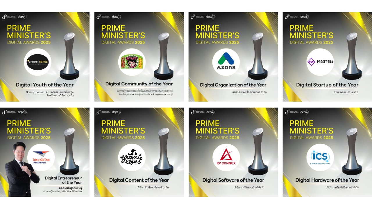 กรุงเทพฯ วันที่ 3 เมษายน 2569-ดีป้า ประกาศรายชื่อผู้ที่ได้รับรางวัล Prime Minister’s Digital Awards 2025 รางวัลเชิดชูเกียรติแก่ผู้ที่มีผลงานดีเด่นด้านเทคโนโลยีและนวัตกรรมดิจิทัลของประเทศ โดยปีนี้มีการเพิ่ม 3 สาขาใหม่ รวมเป็น 8 สาขา สะท้อนถึงความสำคัญของอุตสาหกรรมดิจิทัลที่ครอบคลุมทุกมิติ หวังสร้างแรงบันดาลใจและยกระดับขีดความสามารถทางการแข่งขันให้ไทยอย่างยั่งยืน