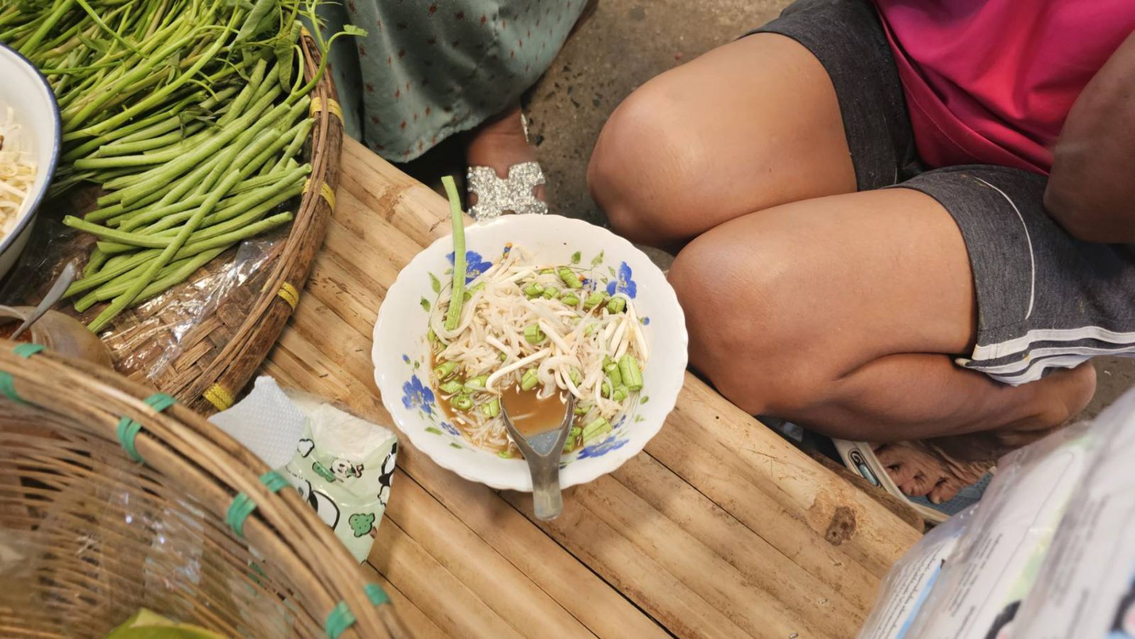 ลูกค้าจะได้สัมผัสบรรยากาศการนั่งบนม้านั่งเตี้ยติดพื้น ล้อมวงรอบแม่ค้า เลือกตักน้ำยาและใส่ผักเหมือด (ผักแกล้ม) ทั้งผักสดและผักดองได้หลากหลายแบบไม่อั้น เป็นความอบอุ่นและคลาสสิกที่ดึงดูดลูกค้าให้แวะเวียนมาอุดหนุนไม่ขาดสาย
