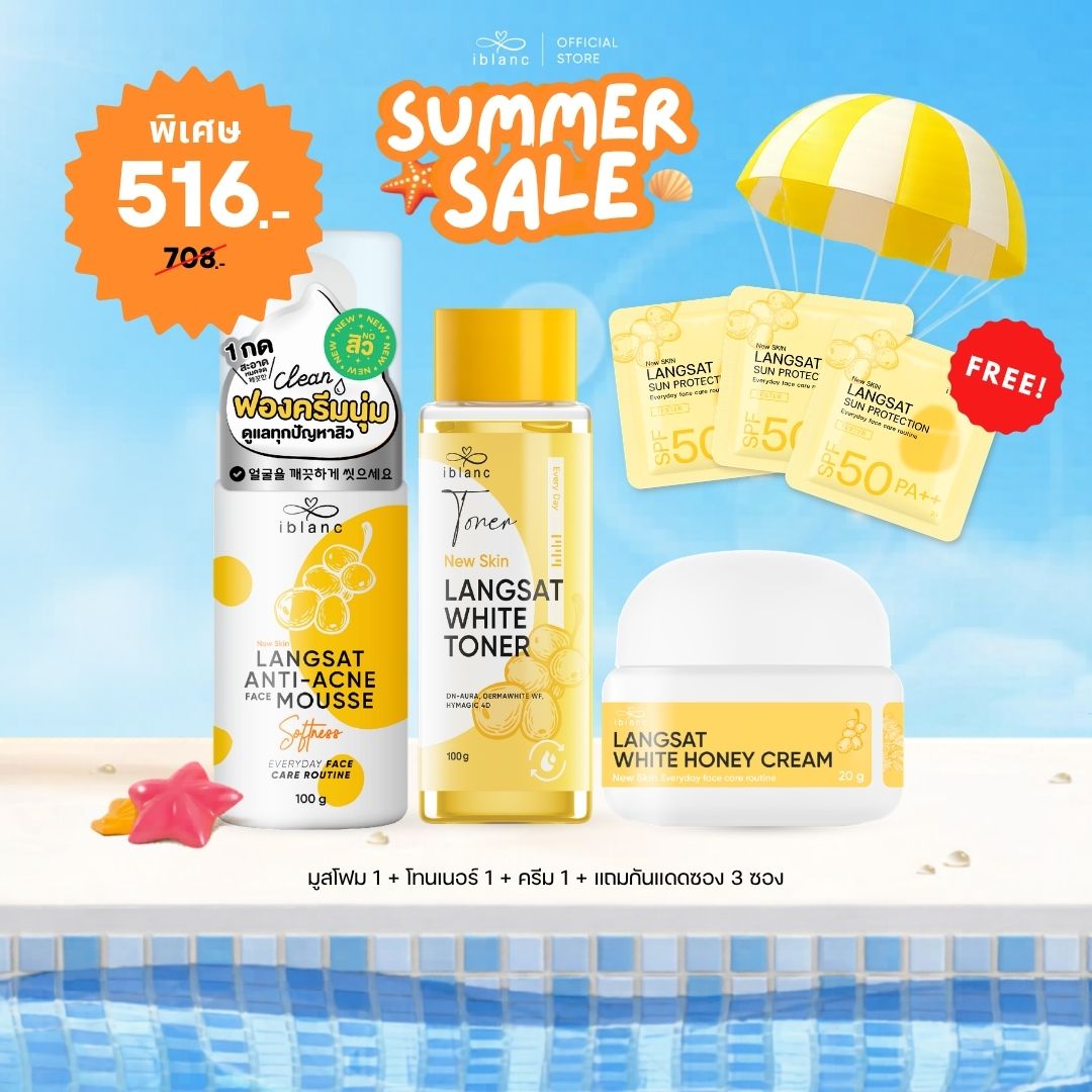 ใครไม่อยากผิวพังช่วงซัมเมอร์และหลังสงกรานต์ ฟังทางนี้! ไอบลองก์ ชวนปกป้องผิวด้วยเซ็ตดูแลผิวลางสาด สกินแคร์ตัวท็อปขายดีที่ช่วยปกป้องผิวพังจากสิวขั้นสุด ที่มาพร้อมกับโปรโมชันแรงสุดคุ้ม ทั้งลด ทั้งแถม ตลอดเดือนเมษายนนี้ ประกอบด้วย ไอบลองก์ ลางสาด เฟซ แอนตี้-แอคเน่ มูส, ไอบลองก์ ลางสาด ไวท์โทนเนอร์, ไอบลองก์ ลางสาด ไวท์ ฮันนี่ ครีม และ ไอบลองก์ ลางสาด ซันโปรเทคชั่น ทั้งหมดนี้คือเซ็ตบิวตี้ไอเทมที่จะช่วยปกป้องผิวทุกคนให้รอดจากสิวผิวพังตลอดซัมเมอร์นี้ จะมีโปรโมชันอะไรบ้าง ไปเลือกช้อปกันได้เลย