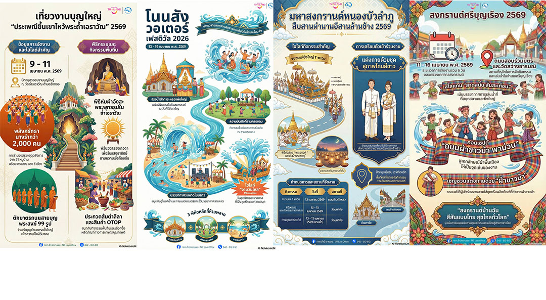 ชวนทุกคนไปม่วนซื่นโฮแซวในงาน “มหาสงกรานต์หนองบัวลำภู 2569” กับกิจกรรมงานสงกรานต์ใน 4 อำเภอนำร่อง จังหวัดหนองบัวลำภูด้วยกัน