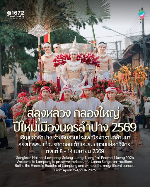 13 เม.ย. 69 : ขบวนแห่จุมพระคู่บ้านคู่เมือง ขบวนเทพธิดาสลุงหลวง ขบวนรถม้าสงกรานต์ลำปาง ขบวนมหาสงกรานต์เบิกบานวิถีใหม่เมืองนครลำปาง และขบวนประกวดปีใหม่เมืองนครลำปาง อัญเชิญองค์พระเจ้าแก้วดอนเต้า