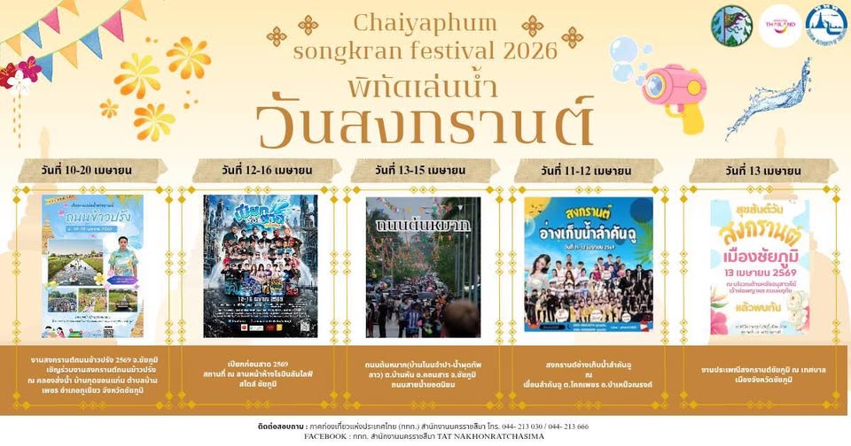 งานประเพณีสงกรานต์ชัยภูมิ วันที่ 13 เมษายน 2569 ณ เทศบาลเมืองจังหวัดชัยภูมิ