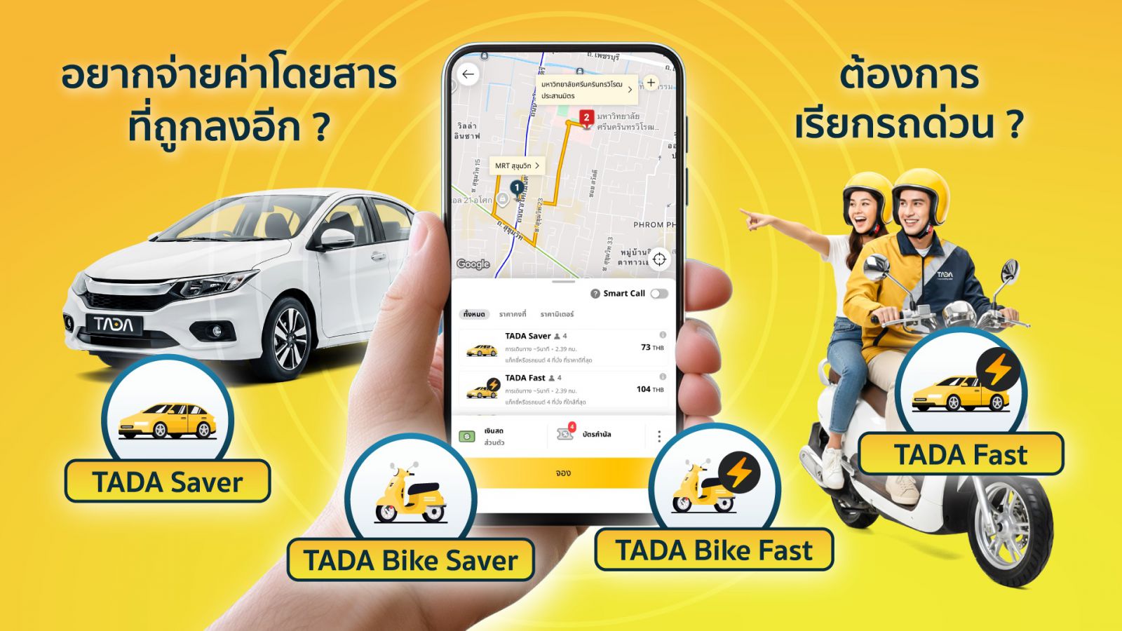 ·กลุ่ม Saver (TADA Saver / TADA Bike Saver) ตัวเลือกที่คุ้มค่าที่สุดในตลาด ออกแบบมาสำหรับการเดินทางในชีวิตประจำวัน ด้วยราคาสมเหตุสมผลแม้ในชั่วโมงเร่งด่วน