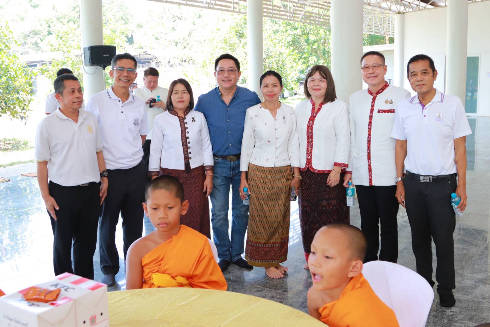 กาฬสินธุ์-ผู้ว่าราชการจังหวัดกาฬสินธุ์ พร้อมด้วยส่วนราชการ ถวายภัตตาหารเพล ไก่ทอด เคเอฟซี สามเณรบรรพชาภาคฤดูร้อนถวายพระราชกุศล แด่พระพันปีหลวง และเฉลิมพระเกียรติกรมสมเด็จพระเทพรัตนราชสุดา
