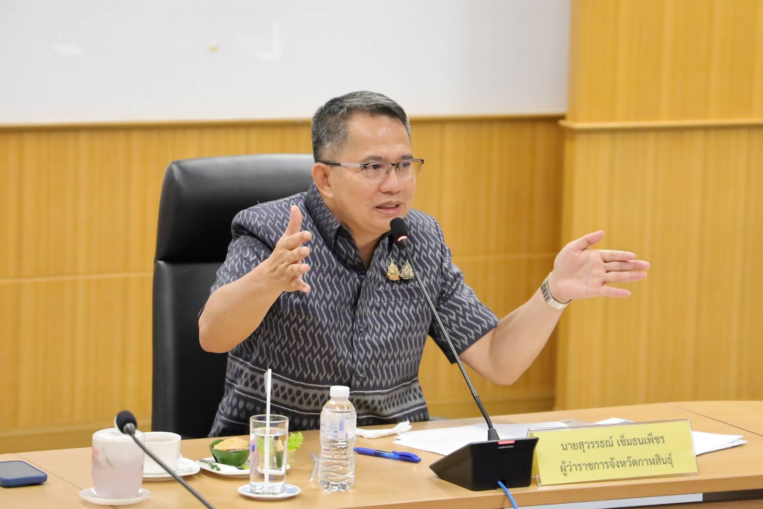 วันพุธที่ 8 เมษายน 2569 เวลา 09.30 น. ณ ห้องฟ้าแดดสงยาง ศาลากลางจังหวัดกาฬสินธุ์ นายสุวรรธณ์ เข็มธนเพ็ชร ผู้ว่าราชการจังหวัดกาฬสินธุ์ เป็นประธานในการประชุมหารือมาตรการช่วยเหลือประชาชนที่ได้รับผลกระทบจากสถานการณ์ด้านพลังงาน กรณี "ราคาน้ำมัน" โดยเปิดเวทีรับฟังความคิดเห็น ข้อเสนอแนะ และร่วมกันวางแผนกำหนดมาตรการต่างๆ เพื่อเป็นแนวทางในการบรรเทาผลกระทบแก่ประชาชน ท่ามกลางสถานการณ์ราคาพลังงานผันผวน โดยมีรองผู้ว่าราชการจังหวัด หัวหน้าส่วนราชการ ภาคเอกชน ผู้แทนมูลนิธิ สมาคม ผู้ประกอบการร้านค้า และผู้แทนภาคประชาสังคม เข้าร่วมประชุม