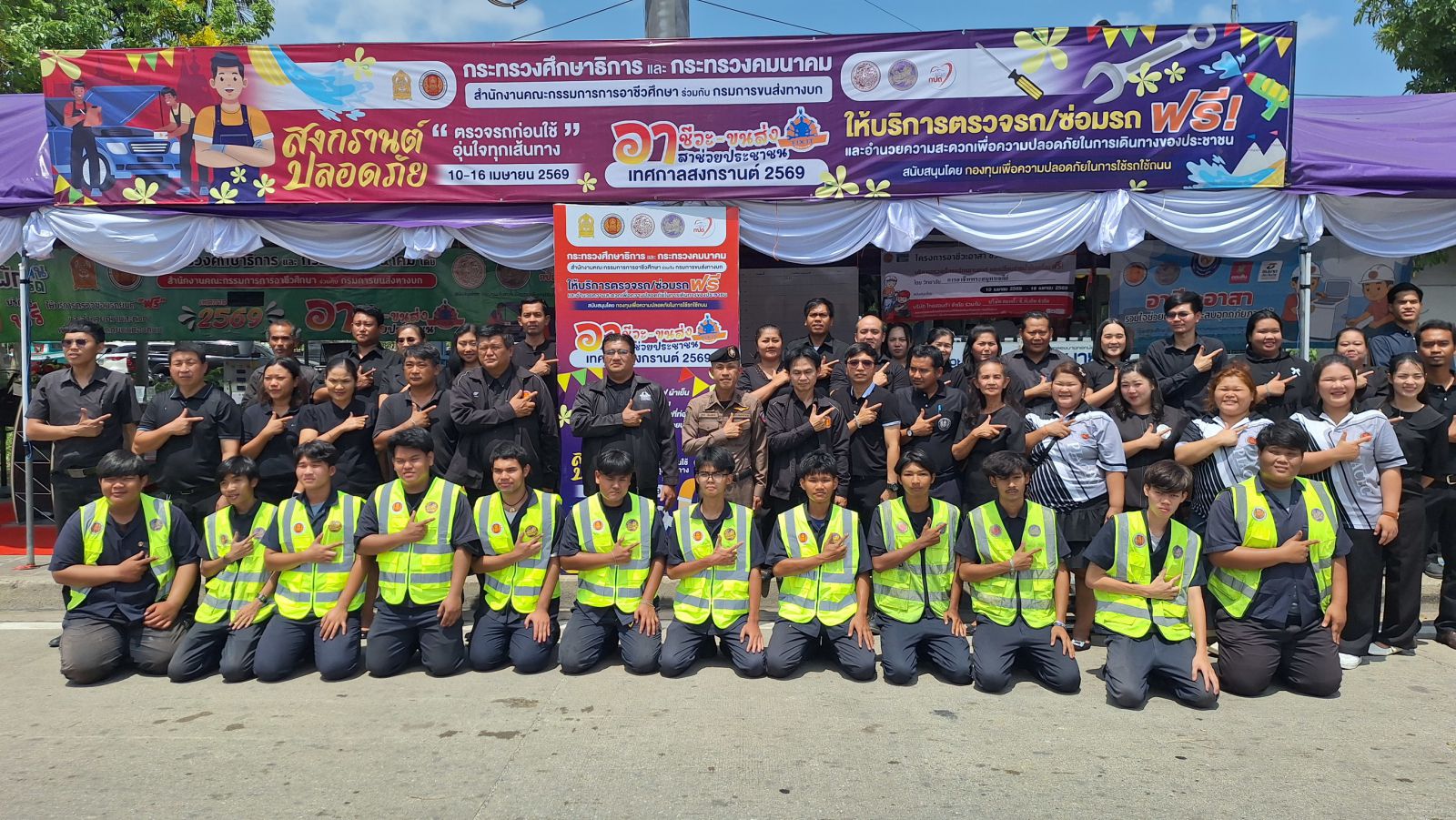 เมื่อเวลา 13.00 น.วันที่ 10 เม.ย.69 นาย เพชรโยธิน ราษฎร์เจริญ ผอ.วิทยาลัยการอาชีพพระสมุทรเจดีย์พร้อมด้วย พ.ต.ท.ฐากร เขียนสะอาด สวป. ปฏิบัติหน้าที่หัวหน้างานจราจร สภ.พระสมุทรเจดีย์ นายวานิตย์ แก้วสวัสดิ์ รองผู้อำนวยการฝ่ายบริหารทรัพยากรและฝ่ายวิชาการและนาย ณรงฤทธิ์ เพชรอยู่ รองผู้อำนวยการฝ่ายพัฒนากิจการนักเรียน นักศึกษาและฝ่ายแผนงานและความร่วมมือวิทยาลัยการอาชีพพระสมุทรเจดีย์ ร่วมกันเปิดจุดบริการ “อาชีวะ-ขนส่งอาสาช่วยประชาชน เทศกาลสงกรานต์ 2569”ภายใต้โครงการ สงกรานต์ปลอดภัย ตรวจรถก่อนใช้ อุ่นใจทุกเส้นทาง ให้บริการตรวจเช็คสภาพรถยนต์และรถจักรยานยนต์ฟรี เพื่อรณรงค์ลดอุบัติเหตุทางถนนในช่วงเทศกาลสงกรานต์ ระหว่างวันที่ 10–16 เมษายน 2569 เวลา 06.00–18.00 น. บริเวณริมถนนด้านหน้า สภ.พระสมุทรเจดีย์ หมู่ที่ 1 ต.ปากคลองบางปลากด อ.พระสมุทรเจดีย์ จ.สมุทรปราการ