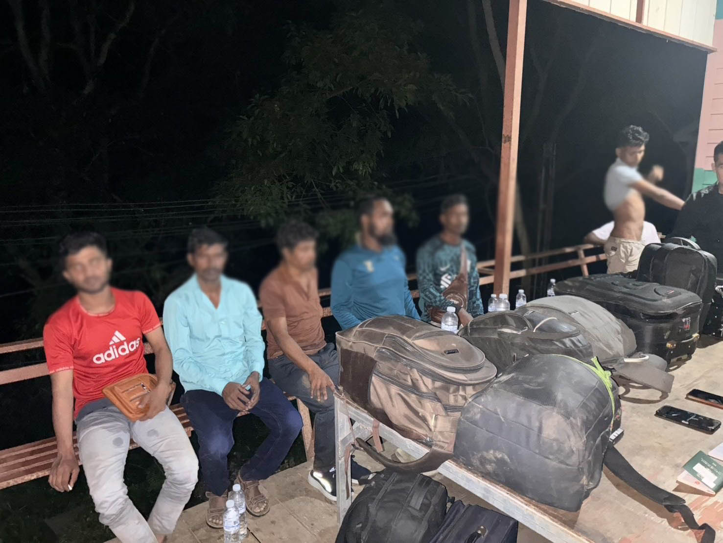 จากการตรวจสอบพบเป็นบุคคลต่างด้าวสัญชาติบังกลาเทศ จำนวน 8 คน (ชายทั้งหมด) พร้อมกระเป๋าสัมภาระ เจ้าหน้าที่จึงควบคุมตัวไปยังที่ตั้งกองร้อย เพื่อสอบถามข้อมูลเบื้องต้น