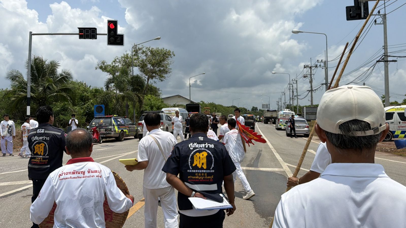 ในคราวนี้ได้มีการปิดกั้นจราจรเป็นบางช่วงตามแยกไฟแดงหรือทางสามแพ่ง ซึ่งก็มีทางเจ้าหน้าที่ตำรวจและอาสาสมัครกู้ภัยสว่างกตัญญูมาช่วยในการอำนวยความสะดวกให้กับคณะ ของทางสมาคม ฯ ได้ดำเนินการ วัตถุประสงค์ ในครั้งนี้ ก็เพื่ออุทิศส่วนบุญส่วนกุศลให้วิญญาณเร่ร่อน และบรรเทาความทุกข์ทรมานของวิญญาณเหล่านั้น นั้นเอง