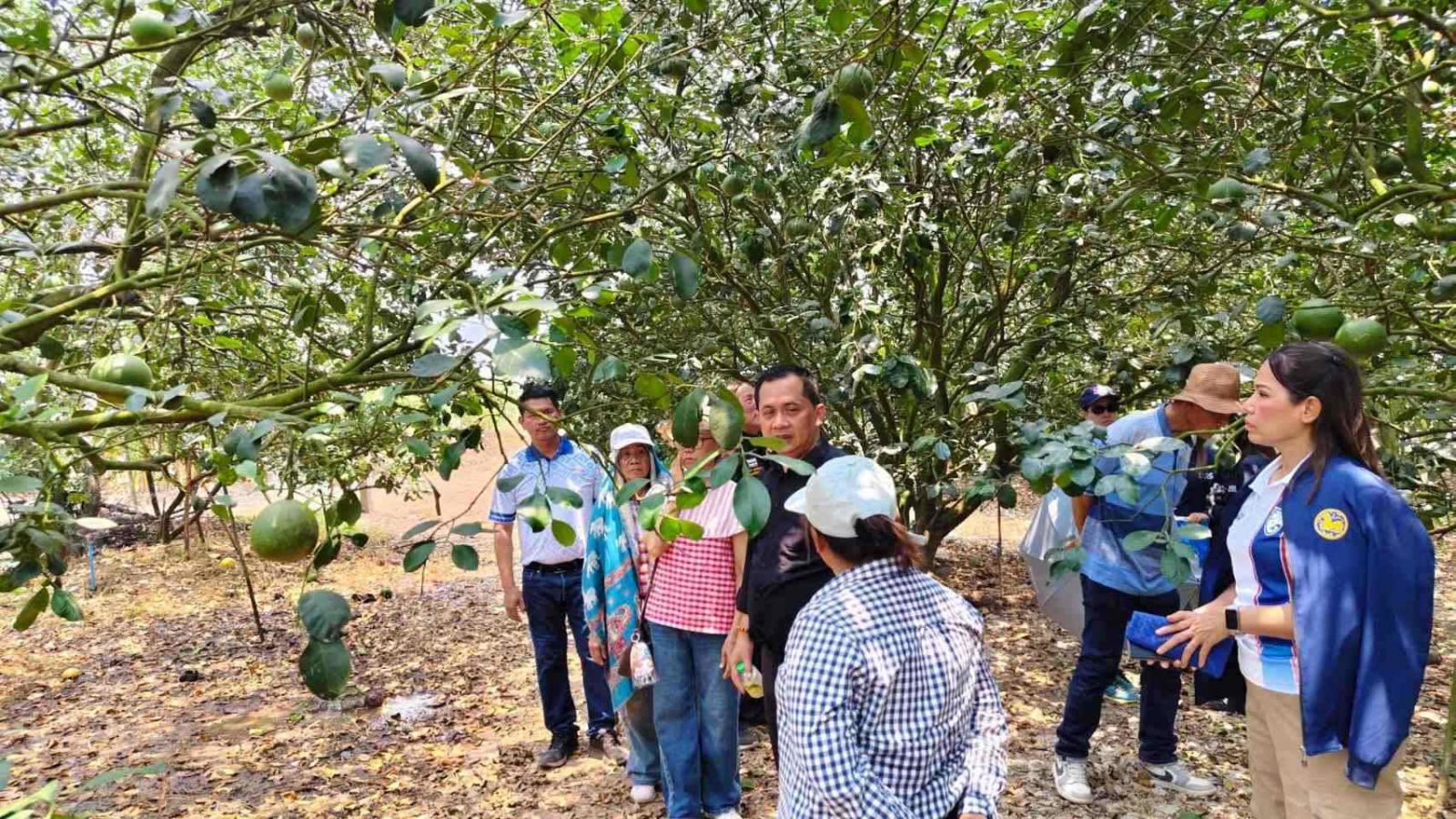 นอกจากนี้ คณะศึกษาดูงานยังได้ลงพื้นที่เยี่ยมชมสวนของกลุ่มเกษตรกรผู้ปลูกส้มโอ เพื่อศึกษากระบวนการผลิตตั้งแต่ต้นน้ำ กลางน้ำ จนถึงปลายน้ำ รวมถึงแลกเปลี่ยนองค์ความรู้ด้านการผลิต การควบคุมคุณภาพ การดูแลรักษาผลผลิต และการบริหารจัดการสวนให้สอดรับกับความต้องการของตลาดส่งออก