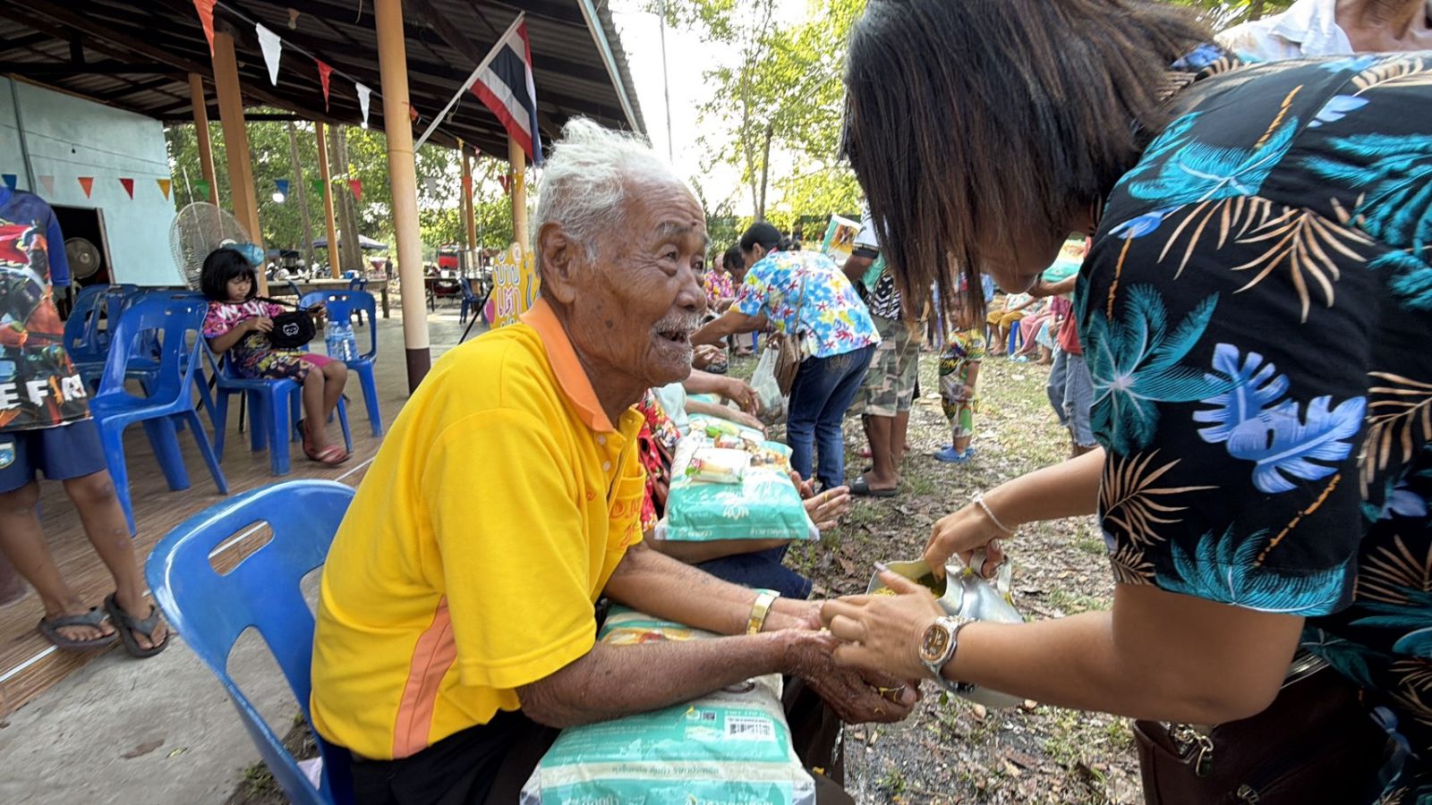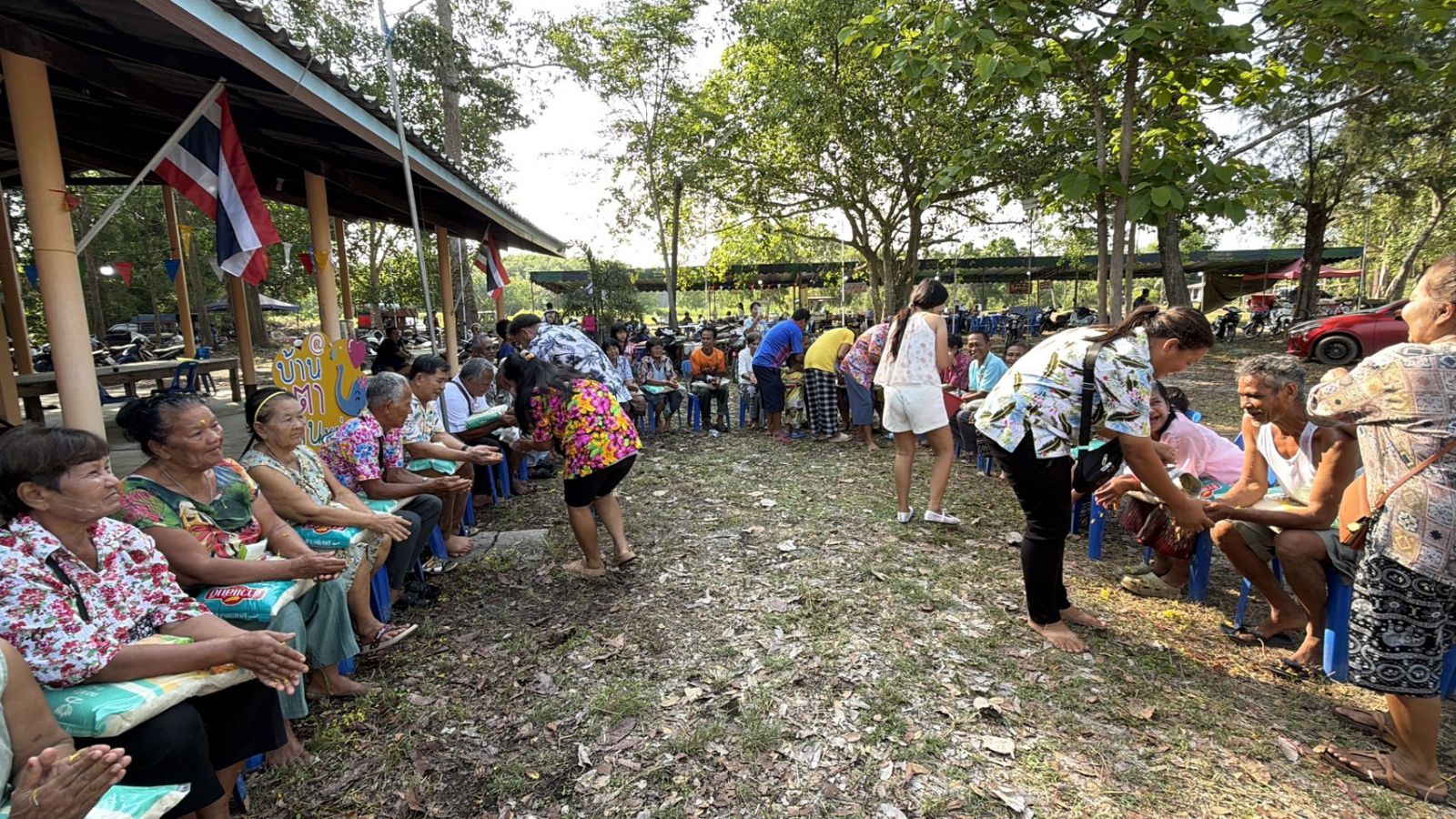ในครั้งนี้ คณะกรรมการในชุมชน ได้เล็งเห็นถึงการร่วมมือร่วมใจกันในหมู่บ้านและชุมชน สร้างความเข้มแข็งให้กับหมู่บ้านเป็นอย่างดี ทั้งยังทำให้สามัคคีกันในชุมชนอีกด้วย กิจกรรมคราวนี้ต่างพร้อมใจร่วมกันก่อพระเจดีย์ทรายน้อมถวายแด่องค์สมเด็จพระสัมมาสัมพุทธเจ้า พร้อมกับมีการแจกข้าวสารให้กับผู้สูงอายุไว้ใช้ไว้กินกันในครอบครัวของตนเอง โดยที่มีผู้สนับสนุนและบริจาค จึงได้ รวบรวมเงินนำไปซื้อข้าวสารเพื่อมาแจกผู้สูงอายุดั่งกล่าว