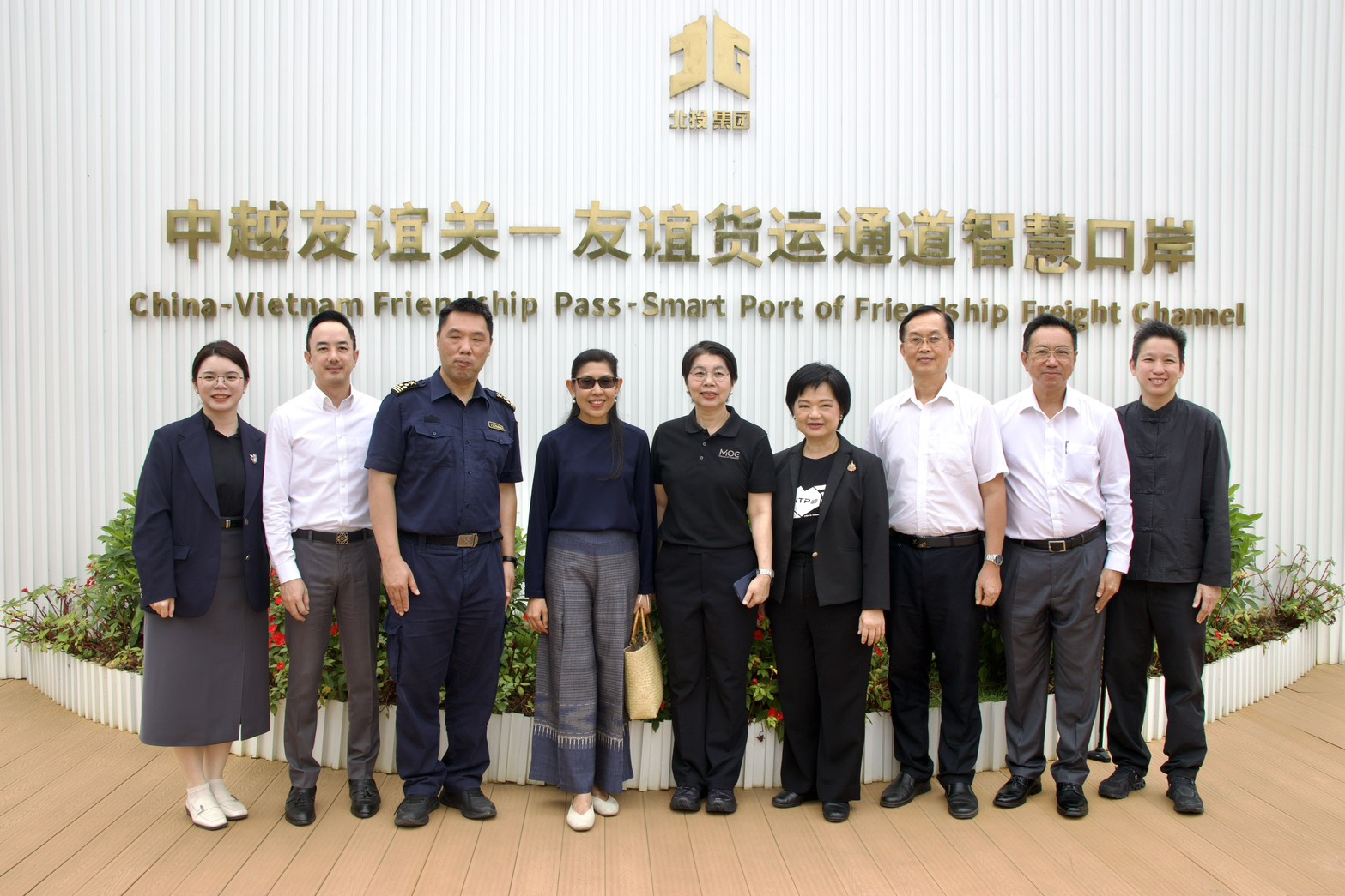 ทั้งนี้ คณะยังได้มีโอกาสหารือกับนายหวง อ้ายตง ผู้ตรวจการระดับ 2 รัฐบาลประชาชนเมืองฉงจั่ว เขตปกครองตนเองกว่างซีจ้วง และนาย เกา ฮุย รองหัวหน้าด่านศุลกากรโหย่วอี้กวน และคณะ โดยได้ใช้โอกาสนี้ขอบคุณที่ช่วยอำนวยความสะดวกช่วงฤดูผลไม้ในปีที่ผ่านมา ซึ่งไทยส่งออกทุเรียนมากว่างซีจ้วง ปริมาณสูงถึง 80,900 ตัน และหวังว่าปีนี้ จะมีการนำเข้าเพิ่มขึ้น และได้ขอขอบคุณการเตรียมการของด่านโหยวอี้กวน ในปี 2569 ทั้งการขยายเวลาทำงาน และเพิ่มจำนวนเจ้าหน้าที่ที่ด่าน เพิ่มช่องพิเศษสำหรับสินค้าเกษตรและผลไม้ (ในช่วงฤดูผลไม้ให้ Priority สินค้าผลไม้เป็นอันดับแรก) จำนวน 40 ช่องในพื้นที่ลานตรวจสอบและกักกัน การตรวจปล่อยแบบมีเงื่อนไข คือ สามารถให้รถขนส่งไปจอดรอผลตรวจ ในพื้นที่ที่ได้รับอนุญาตนอกด่าน เพื่อลดความหนานแน่นบริเวณด่าน การขยายช่องทางเดินรถเข้า-ออก ที่บริเวณเส้นศูนย์กิโลเมตร เป็นจำนวน 6 ช่องทาง (เข้า 3 ช่อง ออก 3 ช่อง) และขณะนี้อยู่ในระหว่างการก่อสร้างขยายเพิ่มช่องทางเดินรถ หากแล้วเสร็จจะมีช่องทางเดินรถ เข้า-ออกเป็นจำนวนทั้งสิ้น 14 ช่องทาง (เข้า 7 ช่อง ออก 7 ช่อง) และการวางแผนช่วงหนาแน่น ผลักดันรถเวียดนามใช้ด่านผู่จ้าย (ด่านทวิภาคีระหว่างจีน-เวียดนาม)