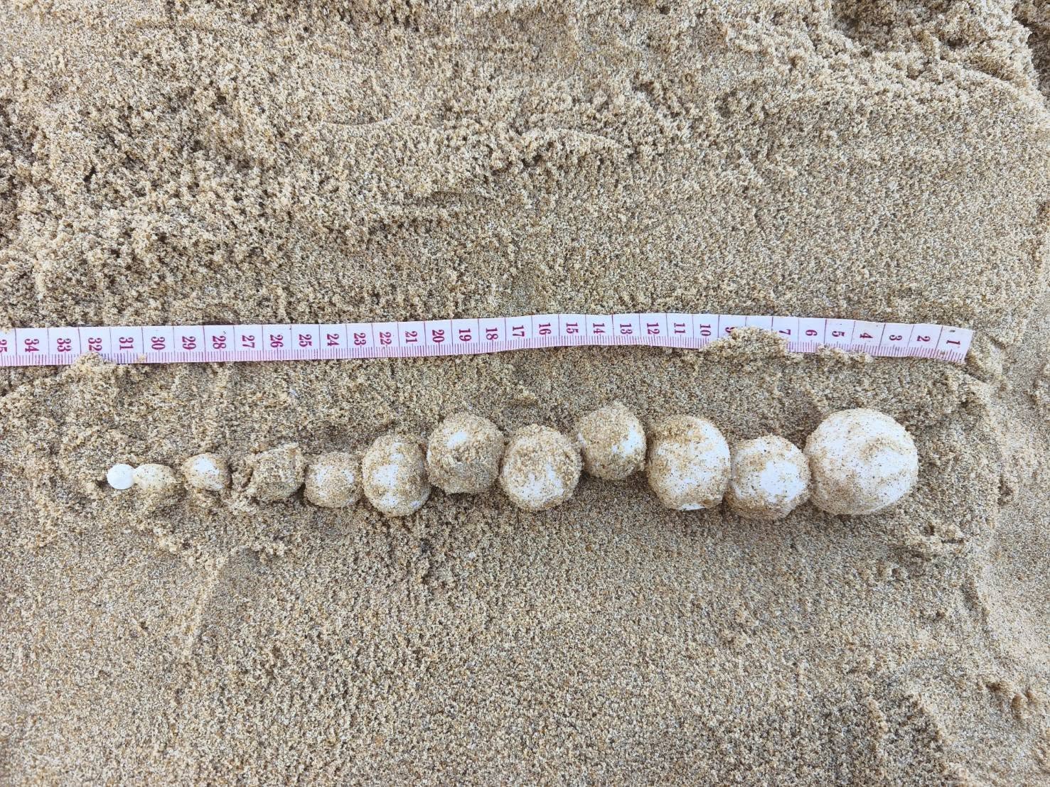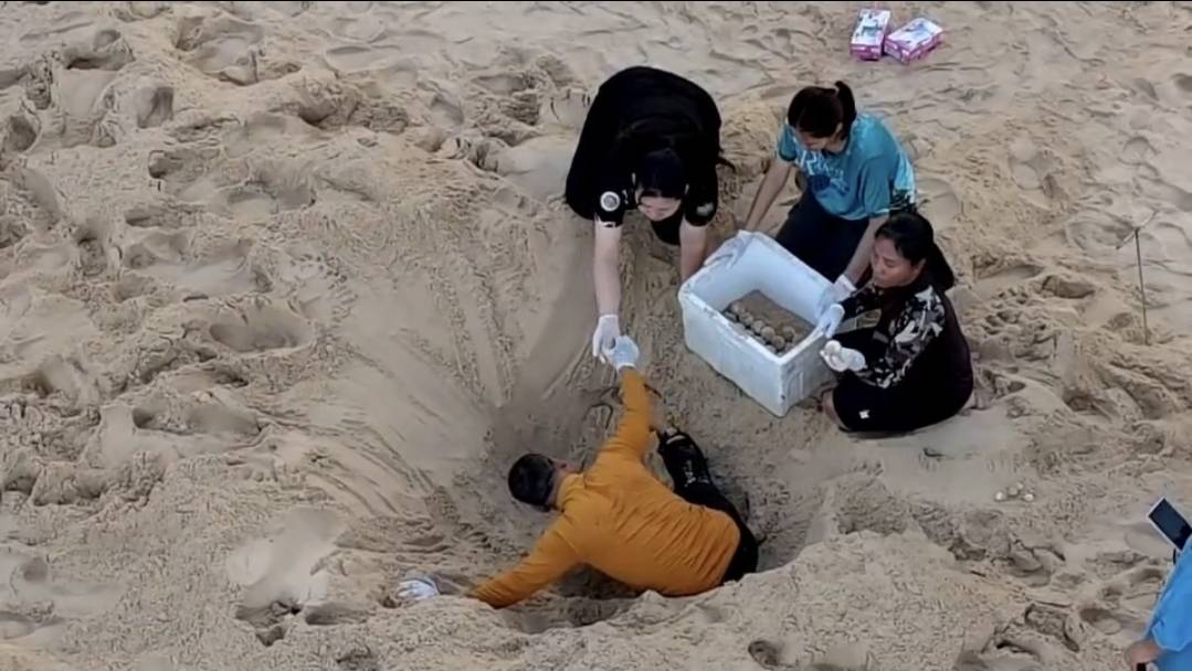 จากการตรวจสอบพบรังไข่เต่ามะเฟืองจำนวนรวม 98 ฟอง แบ่งเป็นไข่สมบูรณ์ 85 ฟอง และไข่ลม 13 ฟอง โดยแม่เต่ามีความกว้างอกประมาณ 100 เซนติเมตร ความกว้างพาย 200 เซนติเมตร ความลึกของหลุมไข่ 100 เซนติเมตร และความกว้างหลุม 40 เซนติเมตร ขณะที่ขนาดไข่เฉลี่ยอยู่ที่ 4.68 เซนติเมตร เจ้าหน้าที่ประเมินว่าจุดวางไข่ดังกล่าวอยู่ในพื้นที่เสี่ยงต่อการถูกน้ำทะเลท่วม จึงได้ดำเนินการขุดย้ายไข่ทั้งหมดไปยังบริเวณชายหาดหน้าศูนย์บริการนักท่องเที่ยว พร้อมจัดทำคอกป้องกันอย่างเข้มงวด เพื่อให้ไข่ฟักตามธรรมชาติอย่างปลอดภัย
